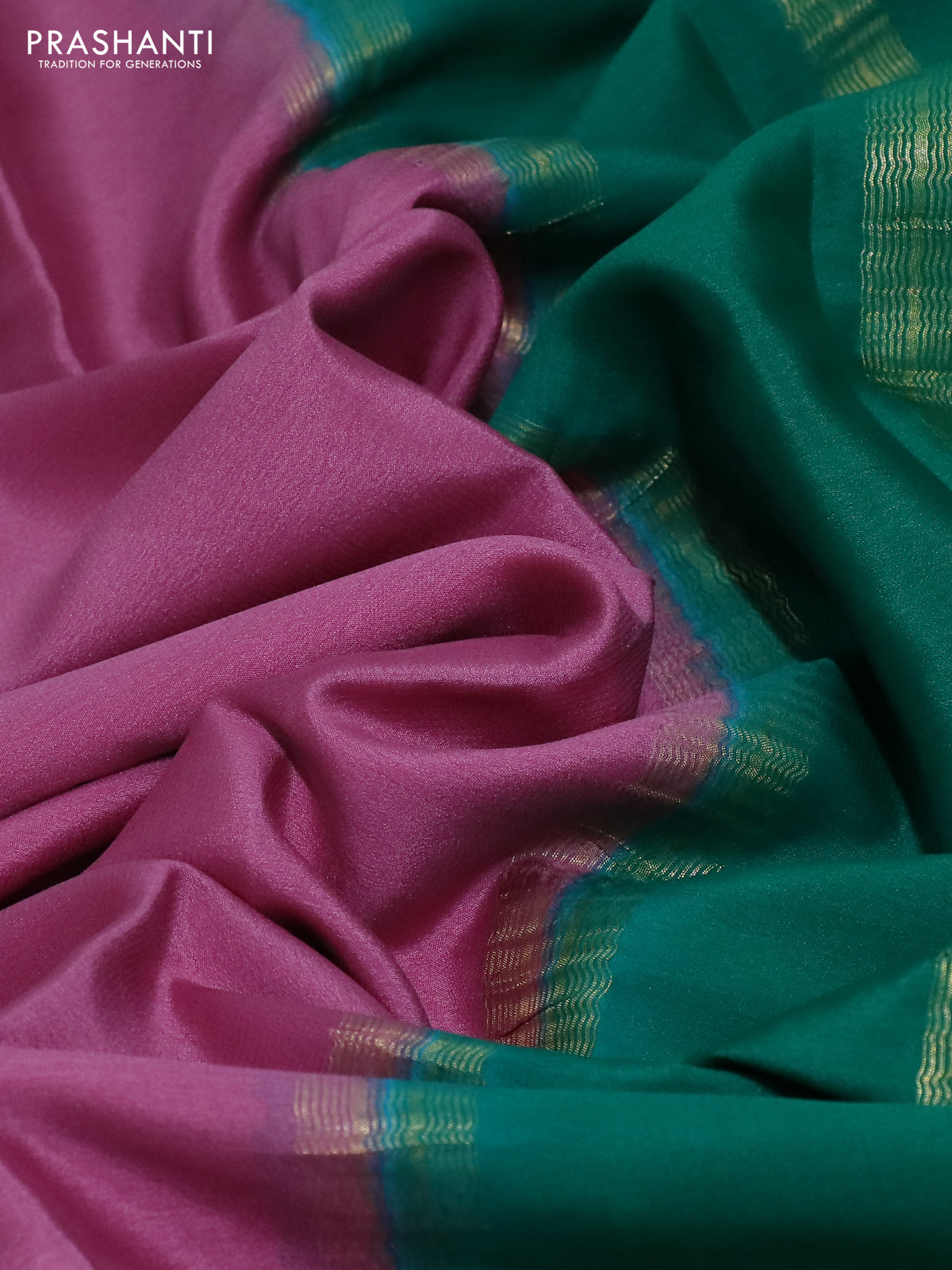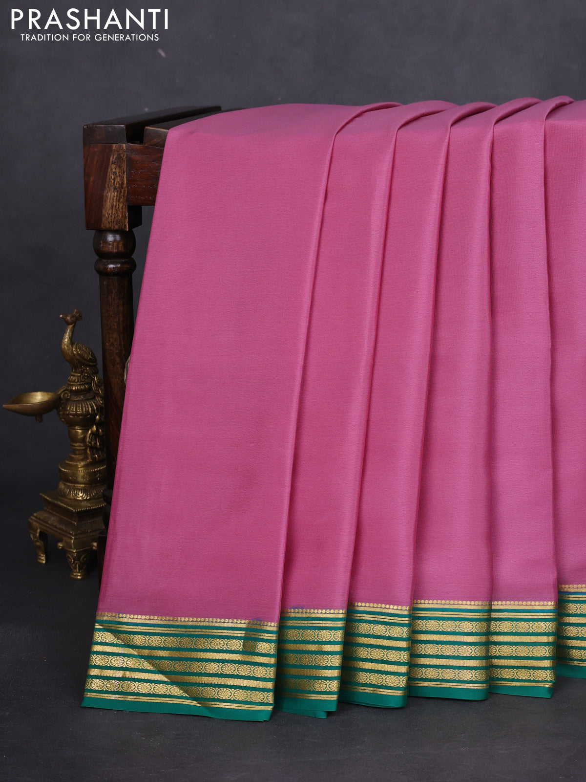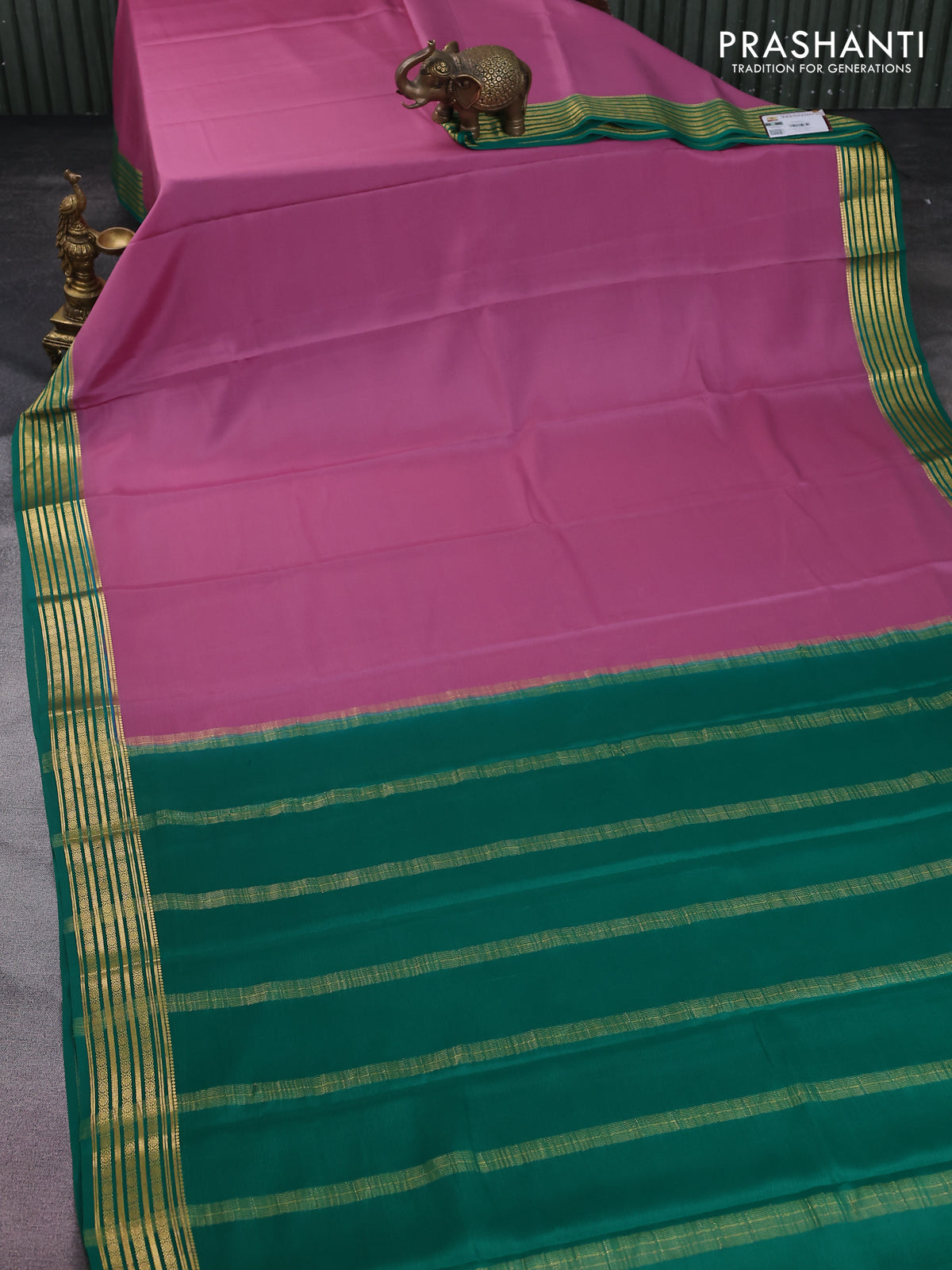 Pure mysore silk saree mauve pink and green with plain body and zari woven border