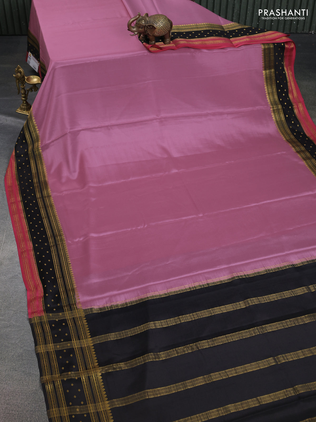 Pure mysore silk saree mild purple and black pink with plain body and zari woven border