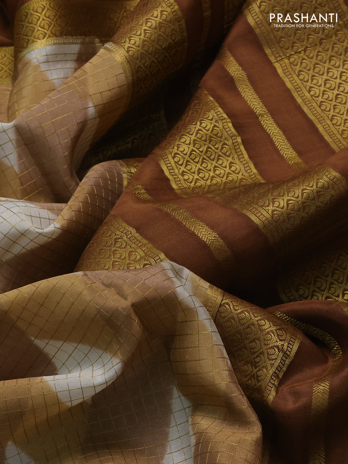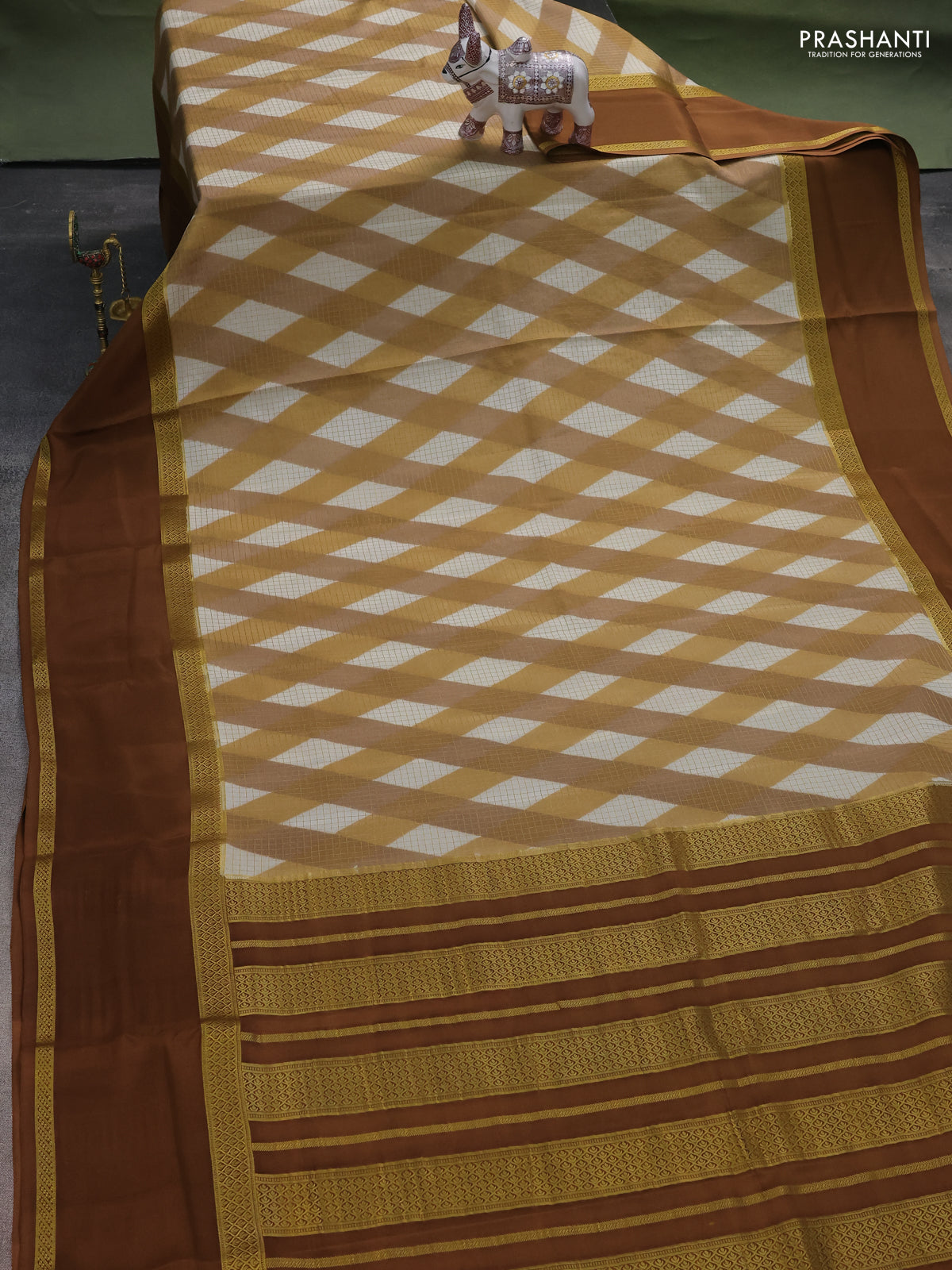 Pure mysore silk saree multi colour and brown with allover checks & geometric prints and rettapet zari woven border