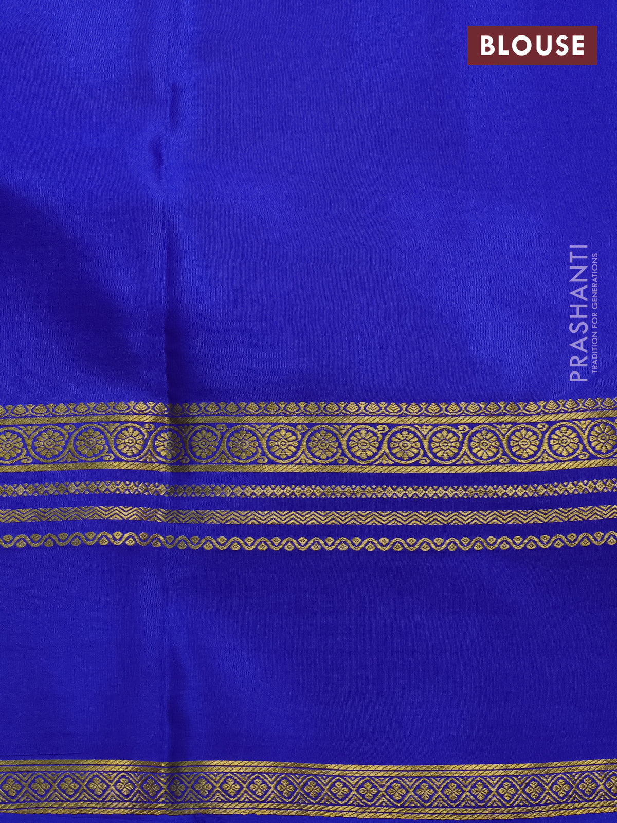 Pure mysore silk saree off white and blue with allover shibori prints and rettapet zari woven border