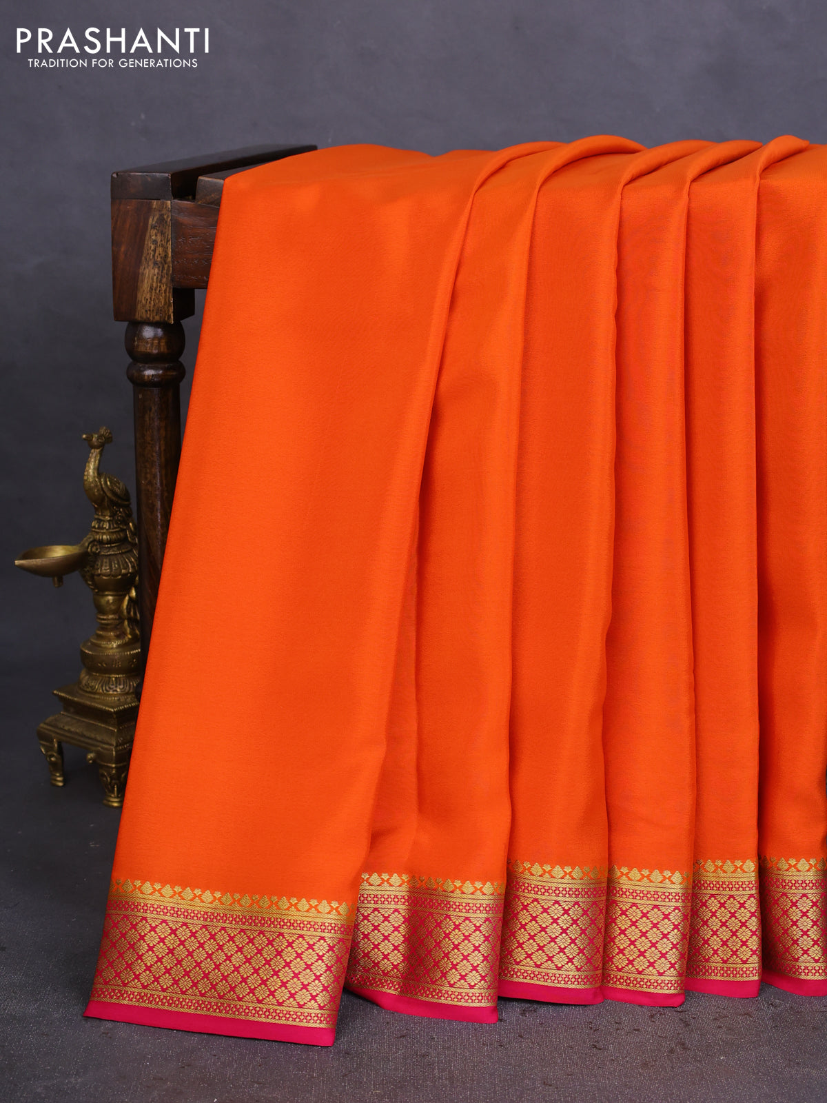 Pure mysore silk saree orange and pink with plain body and zari woven border