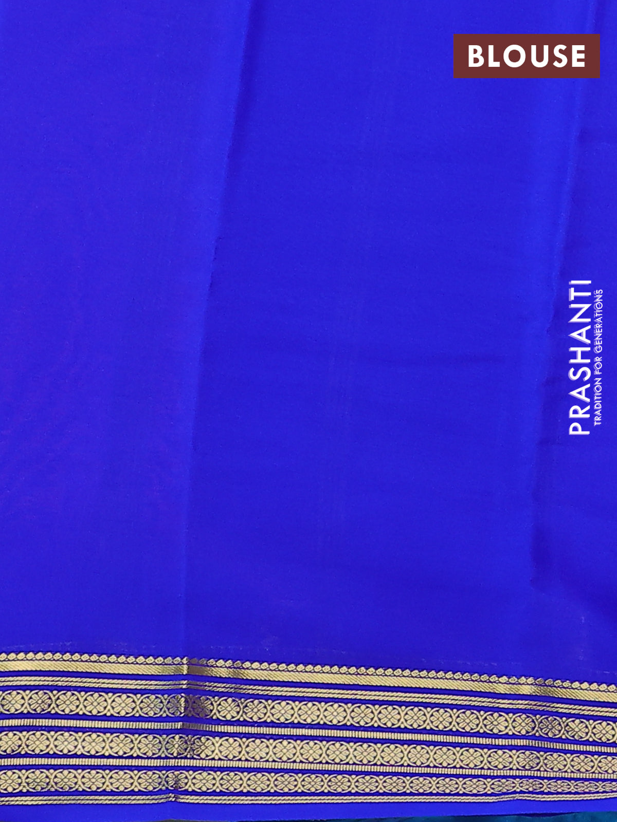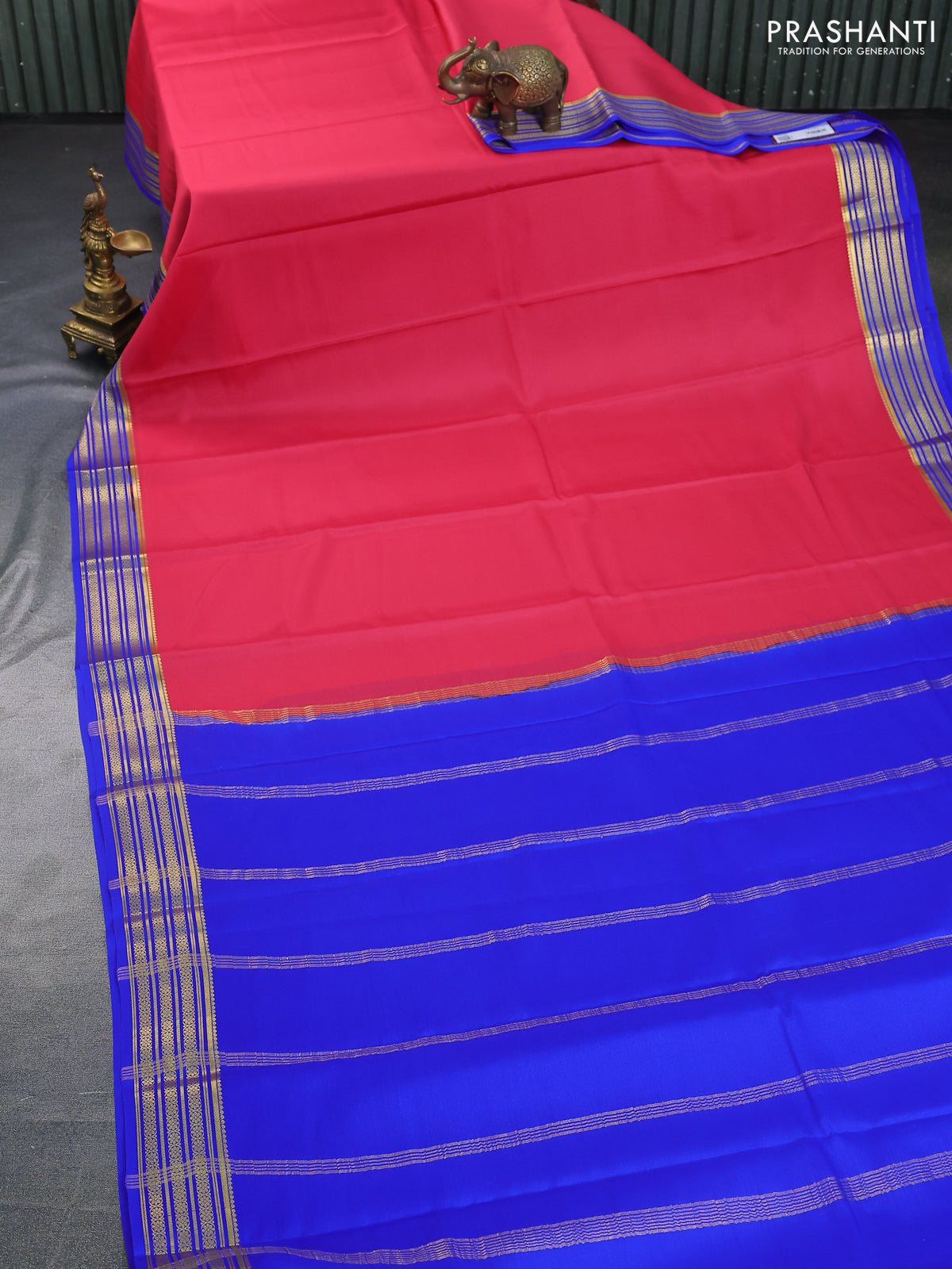 Pure mysore silk saree peach pink and blue with plain body and zari woven border