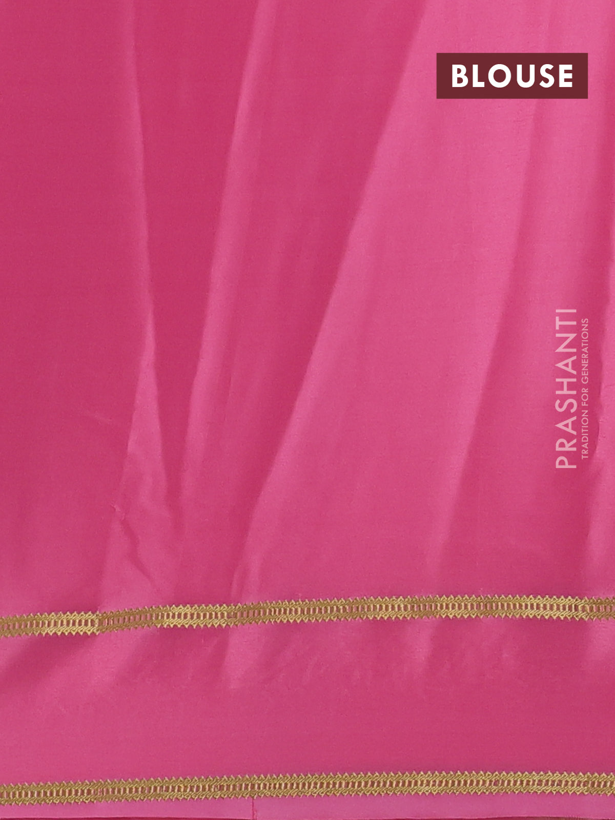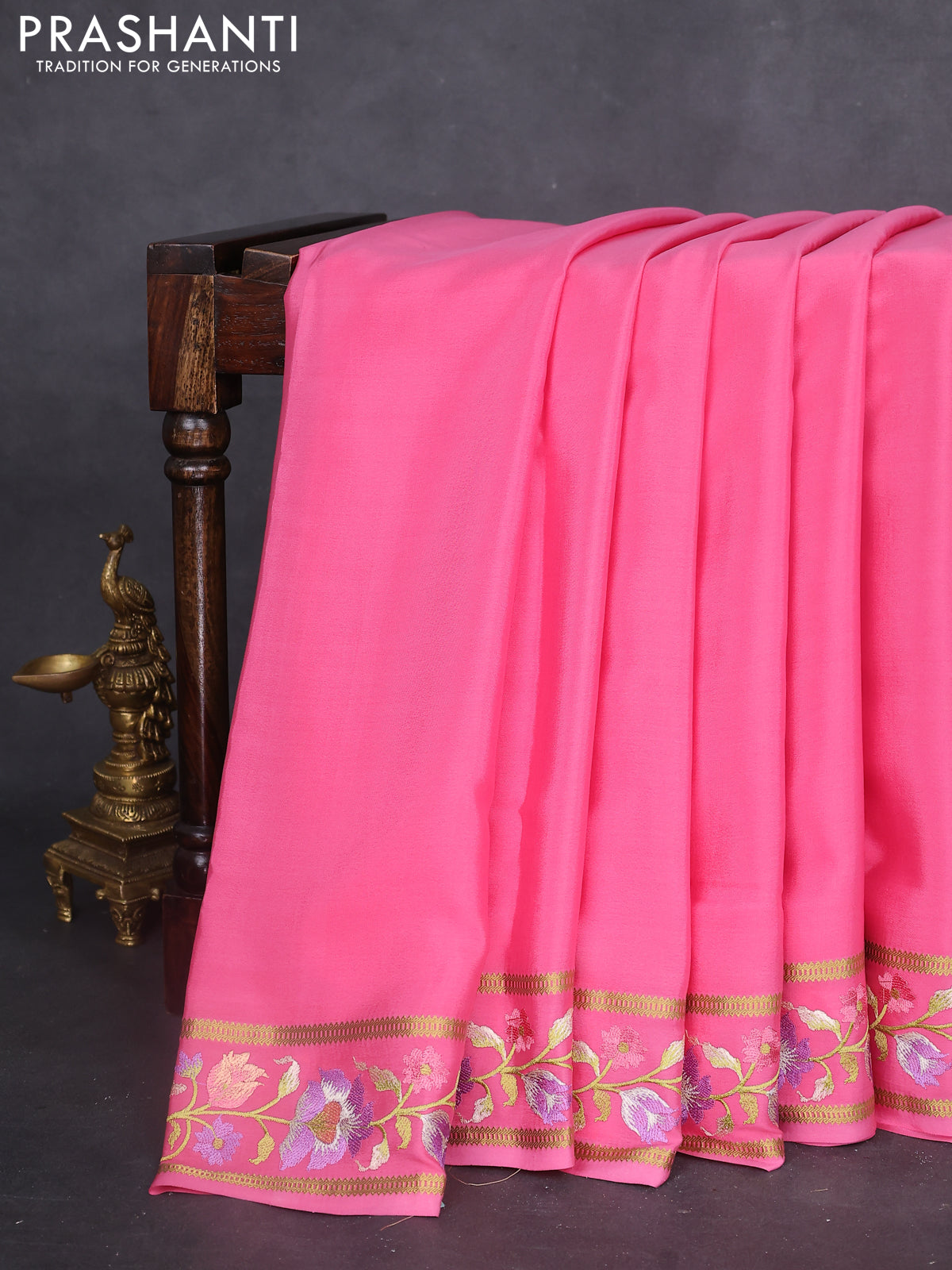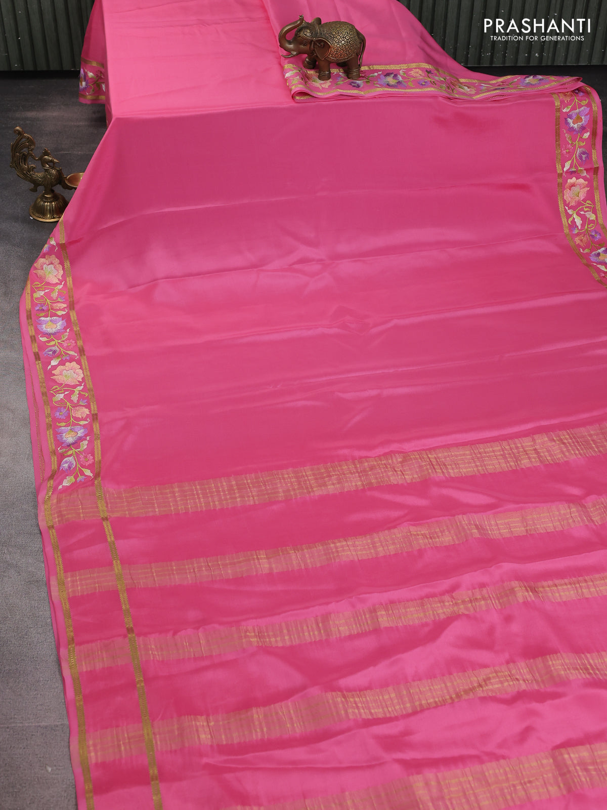 Pure mysore silk saree peach pink with plain body and floral embroidered zari border