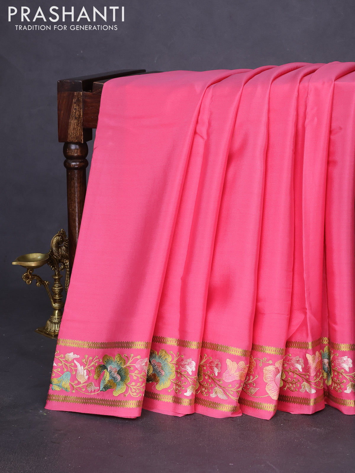 Pure mysore silk saree peach pink with plain body and zari woven embroidery work border