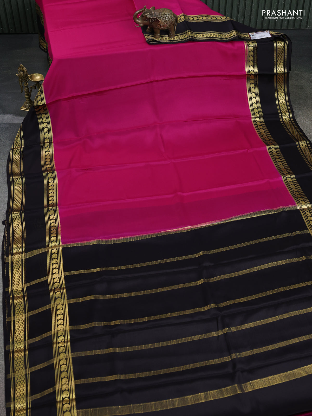 Pure mysore silk saree pink and black with plain body and rettapet zari woven border