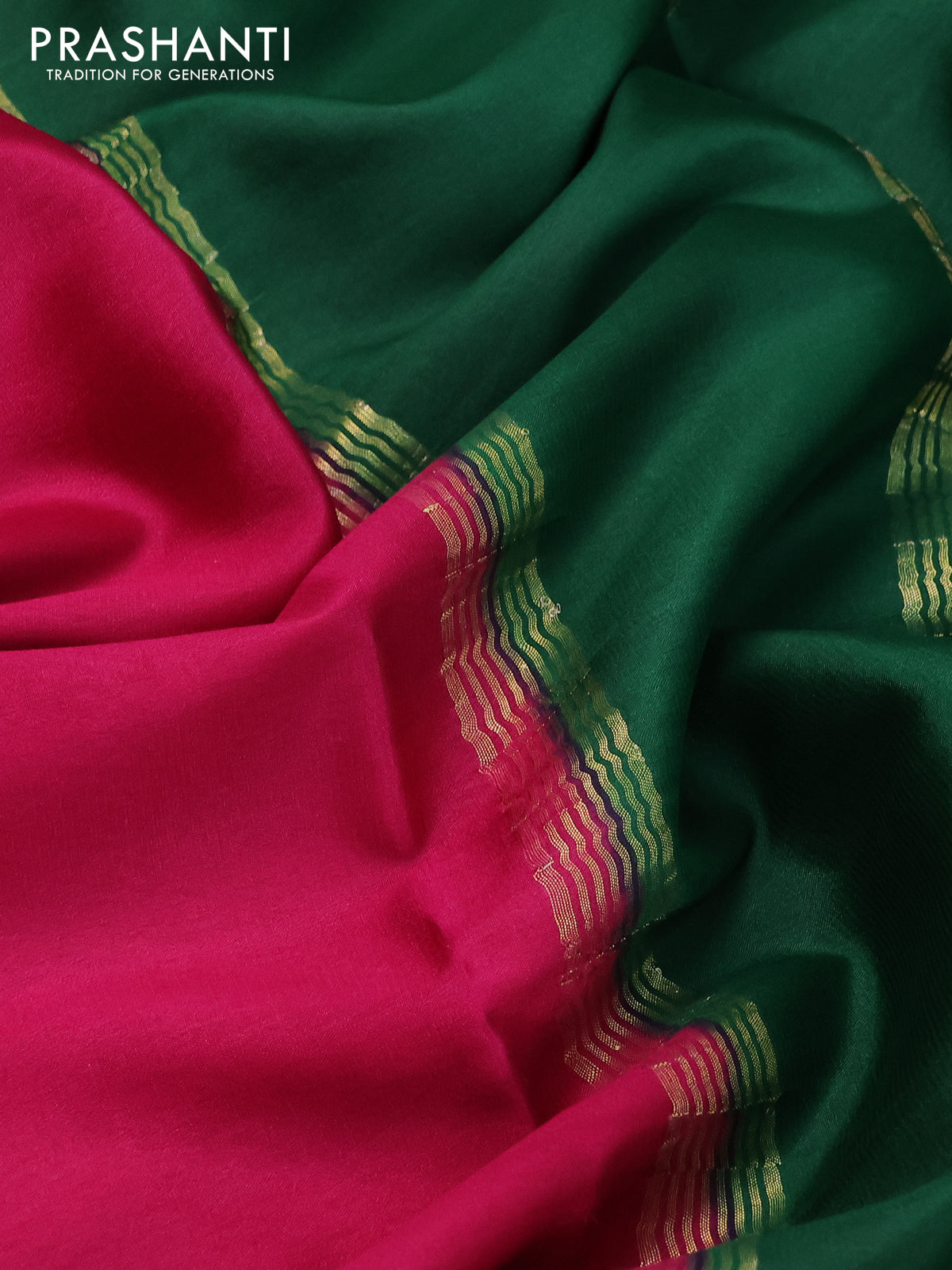Pure mysore silk saree pink and green with plain body and zari woven border