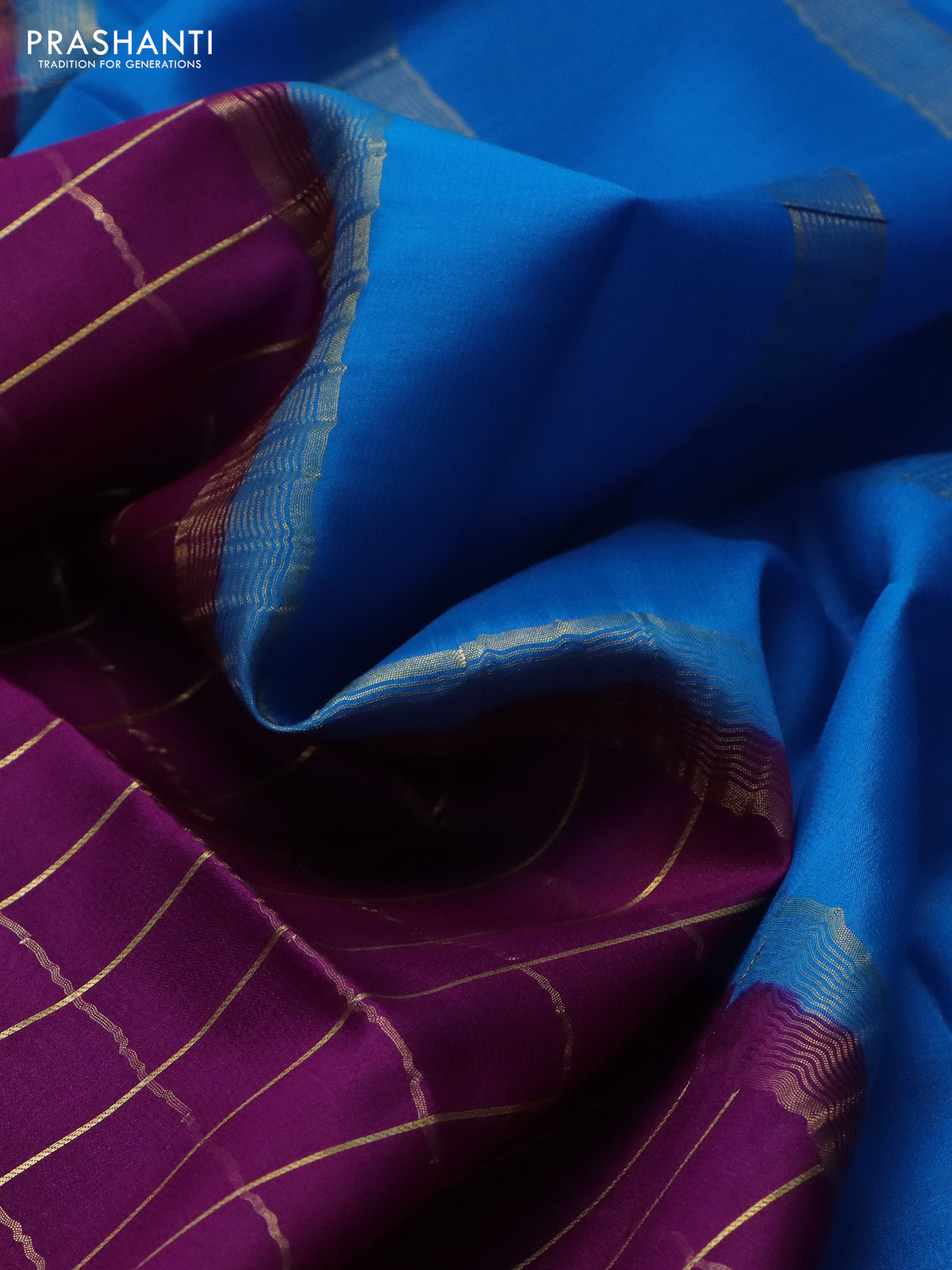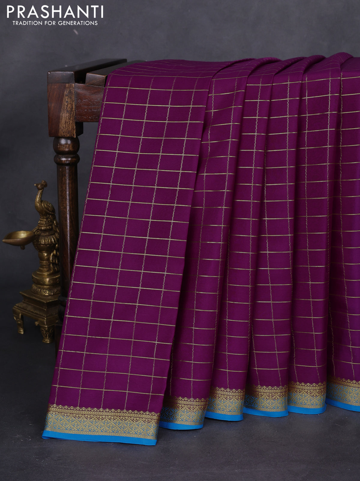 Pure mysore silk saree purple and cs blue with allover zari checked pattern and zari woven border