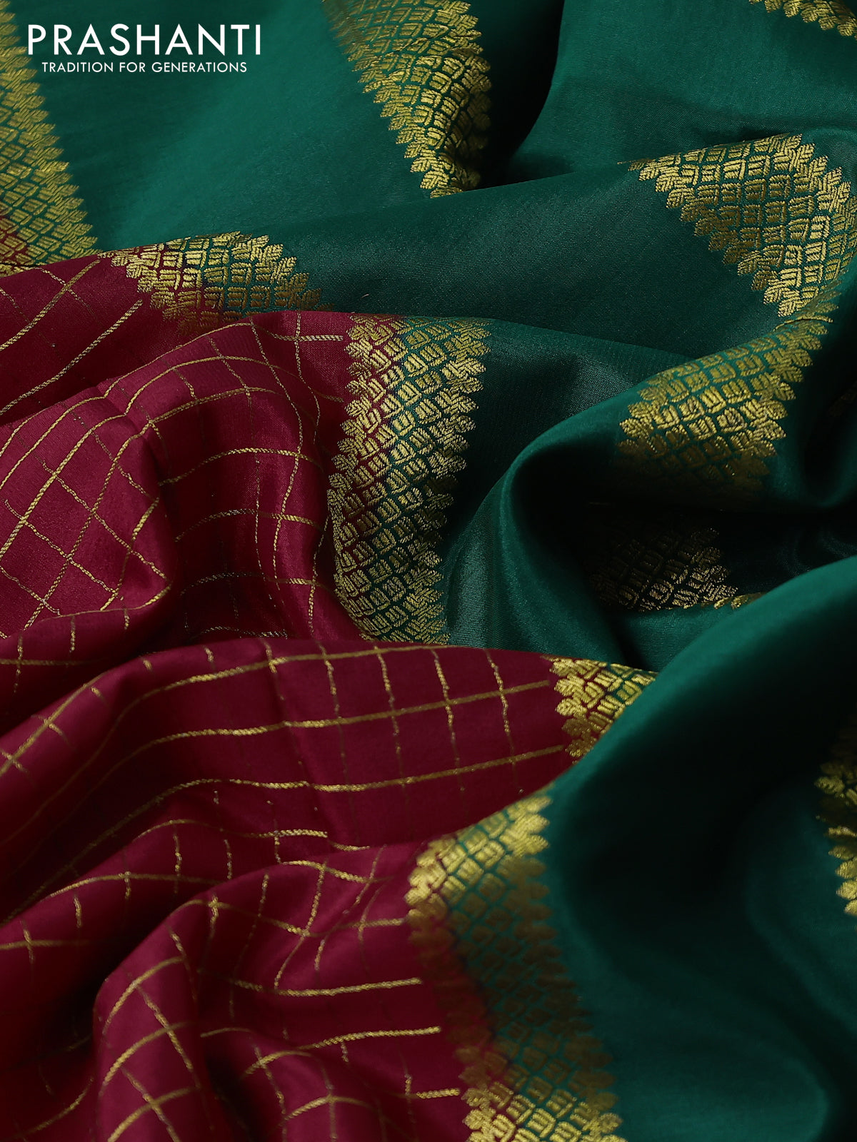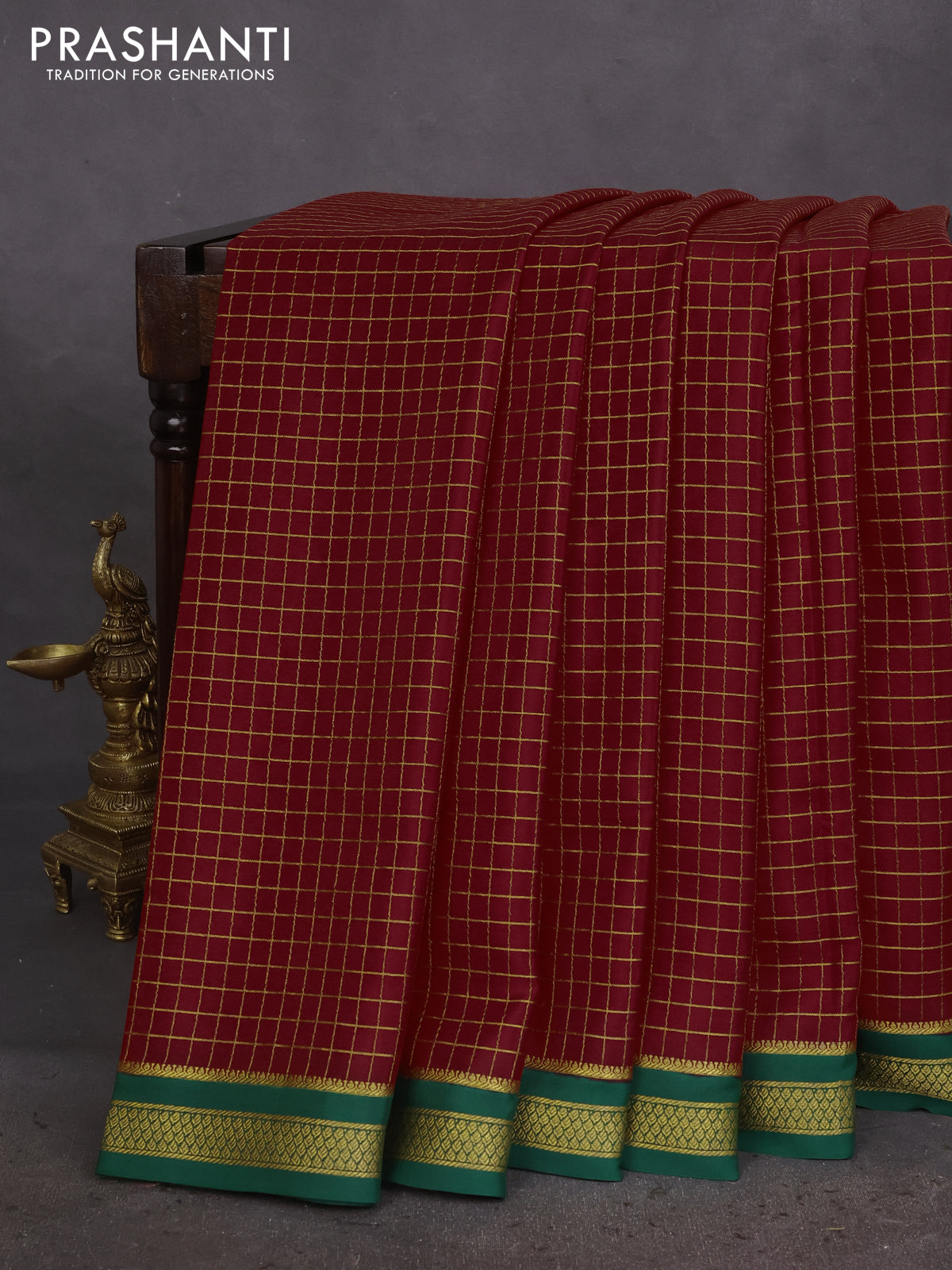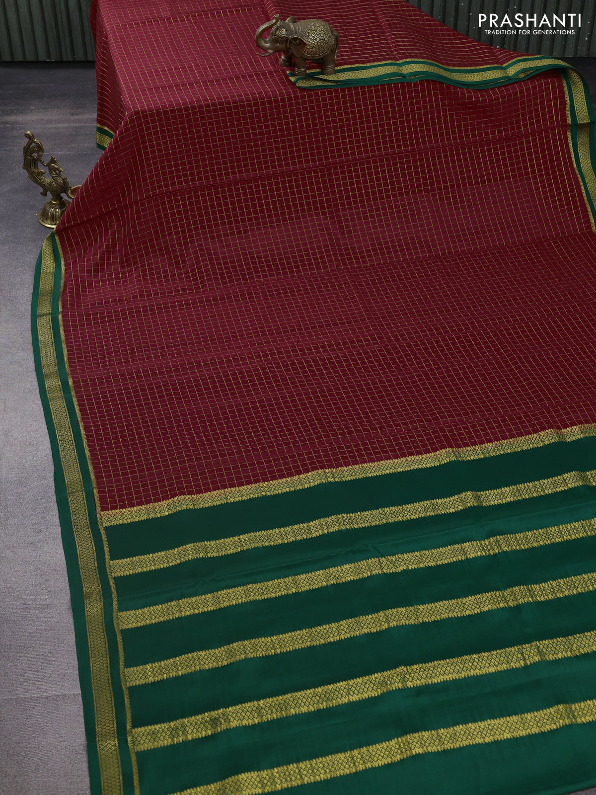 Pure mysore silk saree red and green with allover zari checked pattern and zari woven border