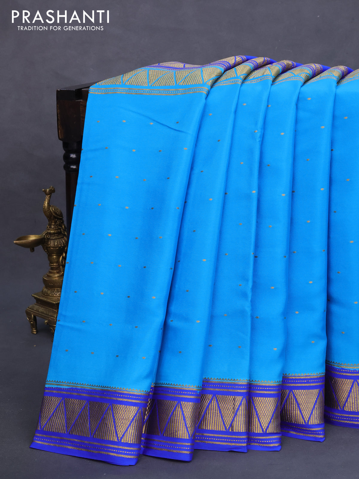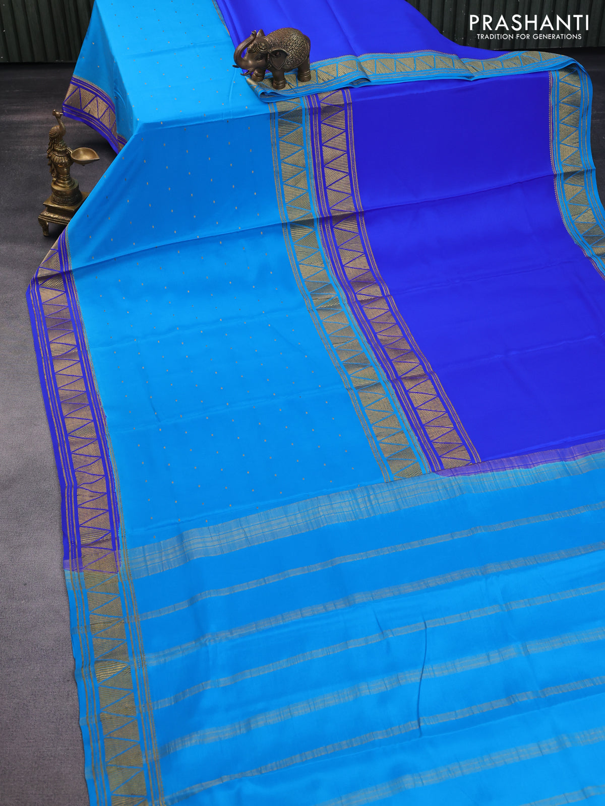 Pure mysore silk saree royal blue and cs blue with half & half style and zari woven border