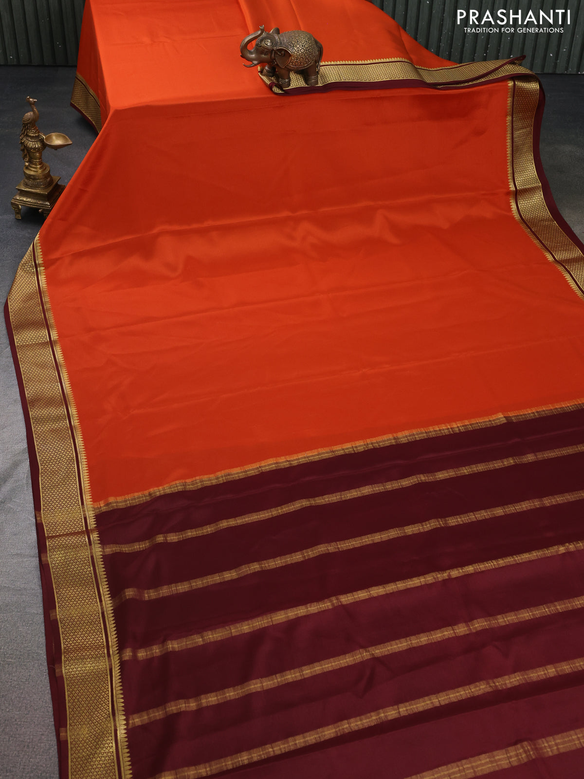 Pure mysore silk saree rustic orange and maroon with plain body and zari woven border