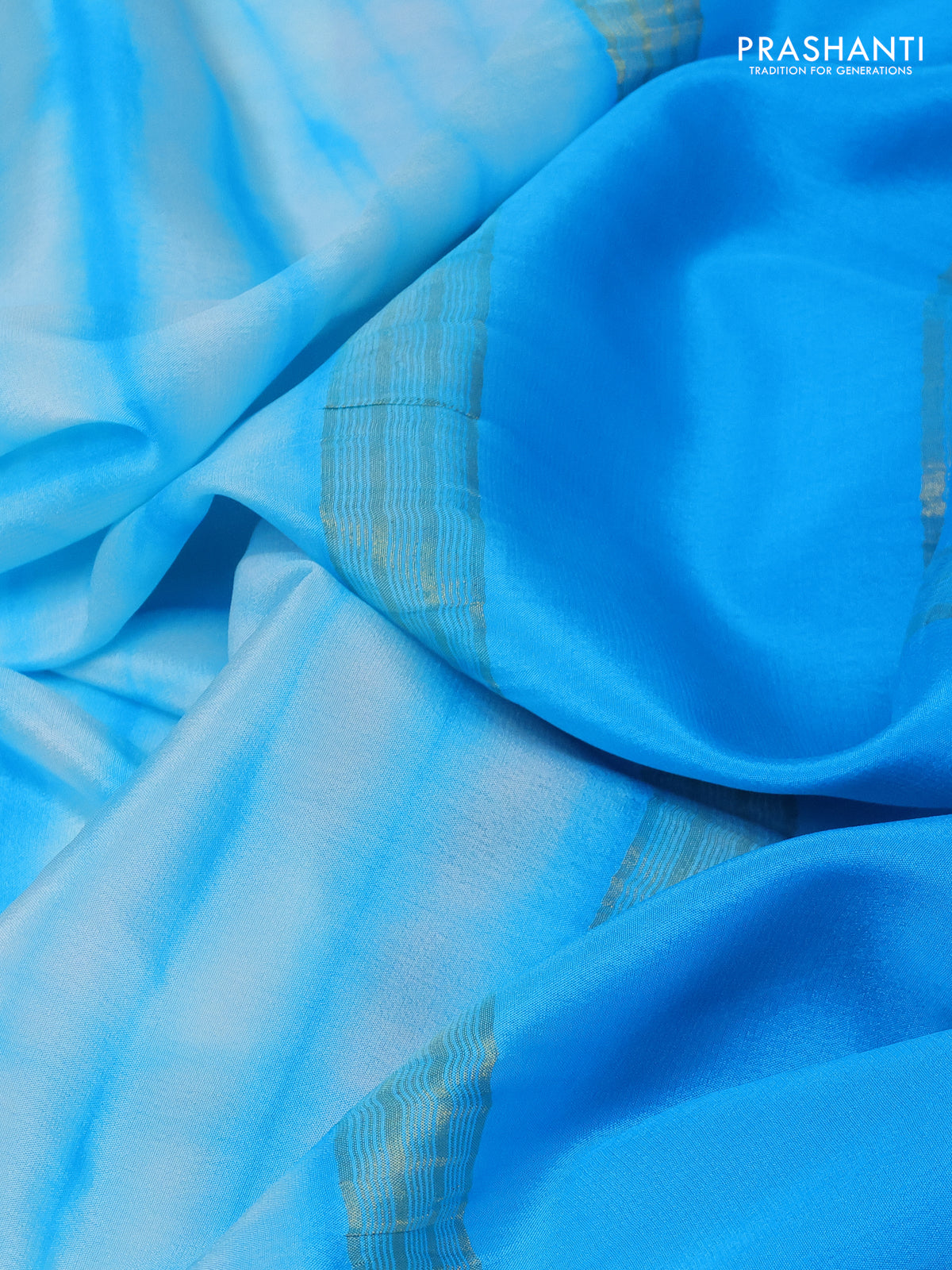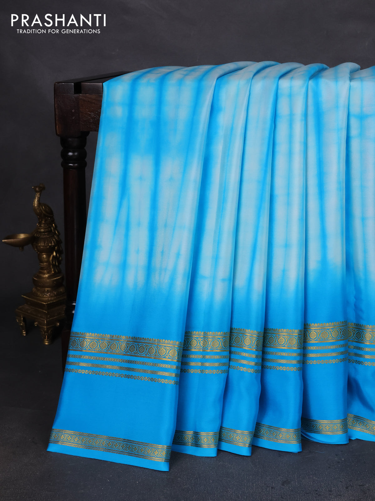 Pure mysore silk saree teal blue with allover shibori prints and rettapet zari woven border