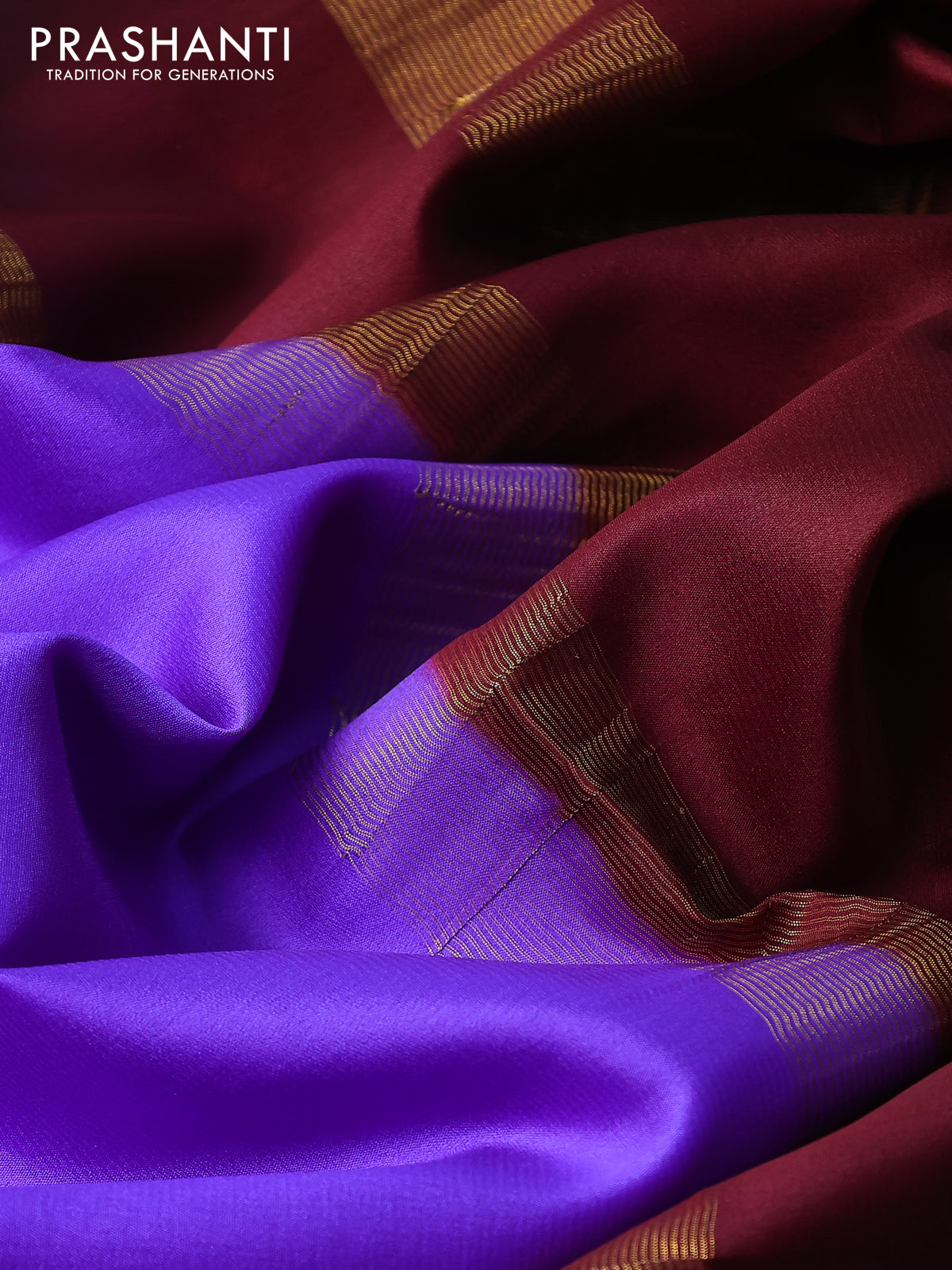 Pure mysore silk saree violet and deep maroon with plain body and rettapet zari woven border