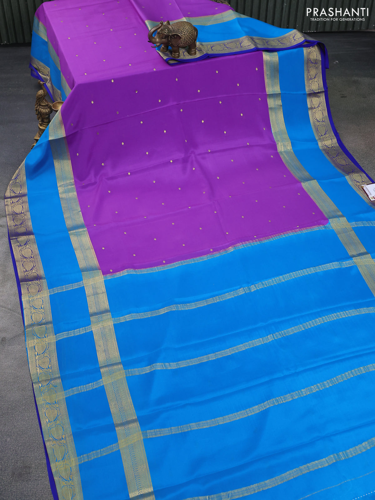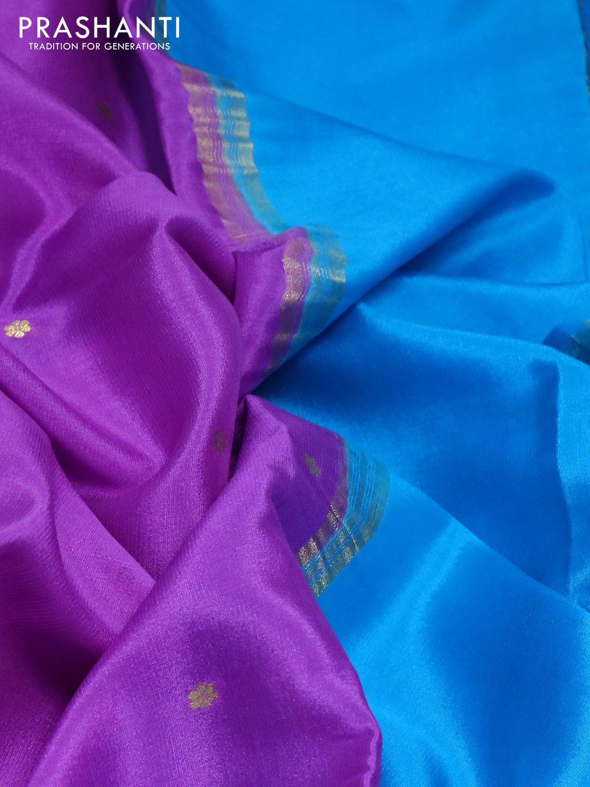 Pure mysore silk saree violet shade and blue cs blue with zari woven buttas and long zari woven border