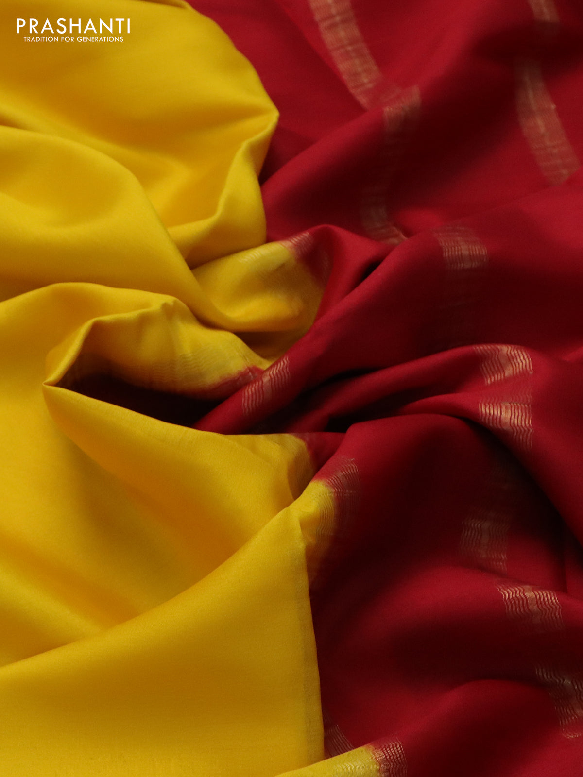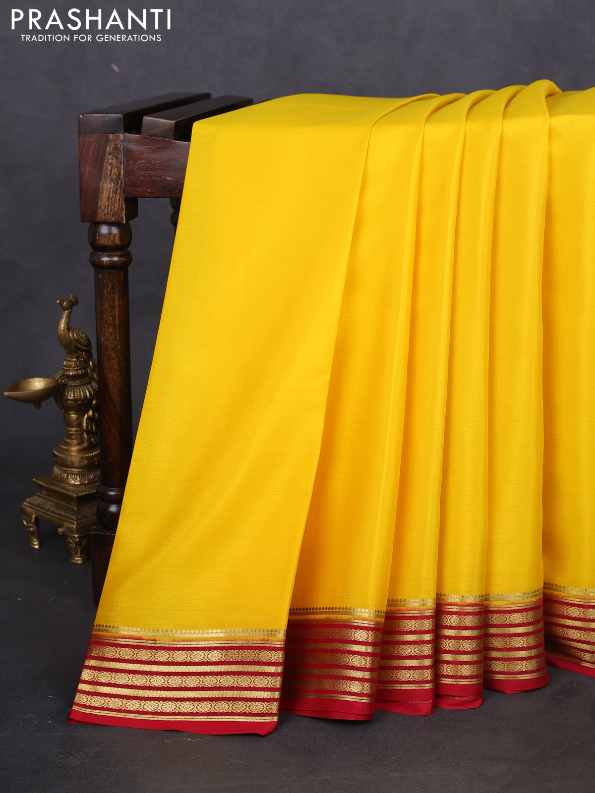 Pure mysore silk saree yellow and red with plain body and zari woven border