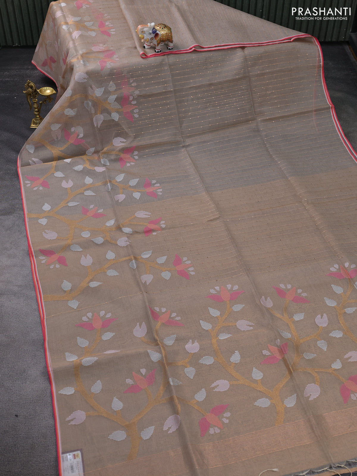 Pure organza silk saree beige and with allover sequin work & jamdhani weaves and jamdhani design pallu