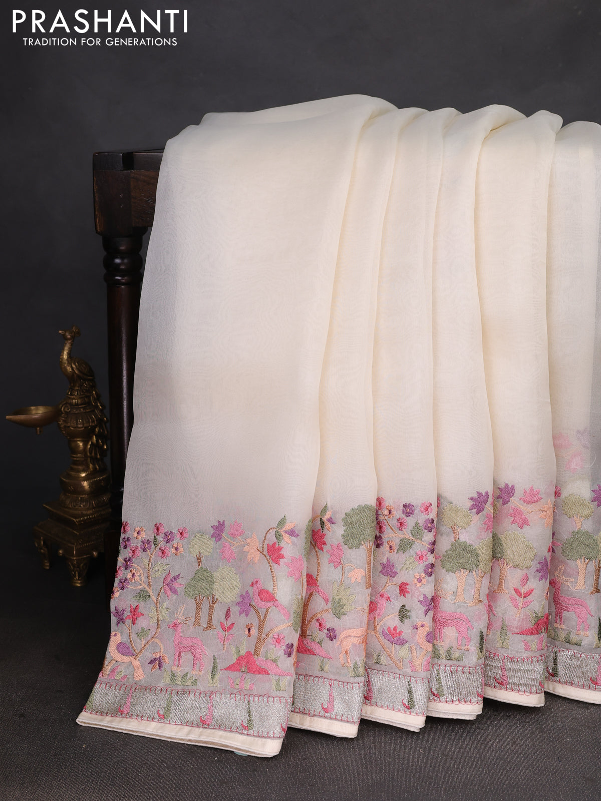 Pure organza sarees celebrated for their sheer lightness and graceful texture, perfect for elegant festive occasions and thoughtful gifting. Curated by Prashanti, each piece reflects timeless charm, refined beauty, and effortless sophistication.
