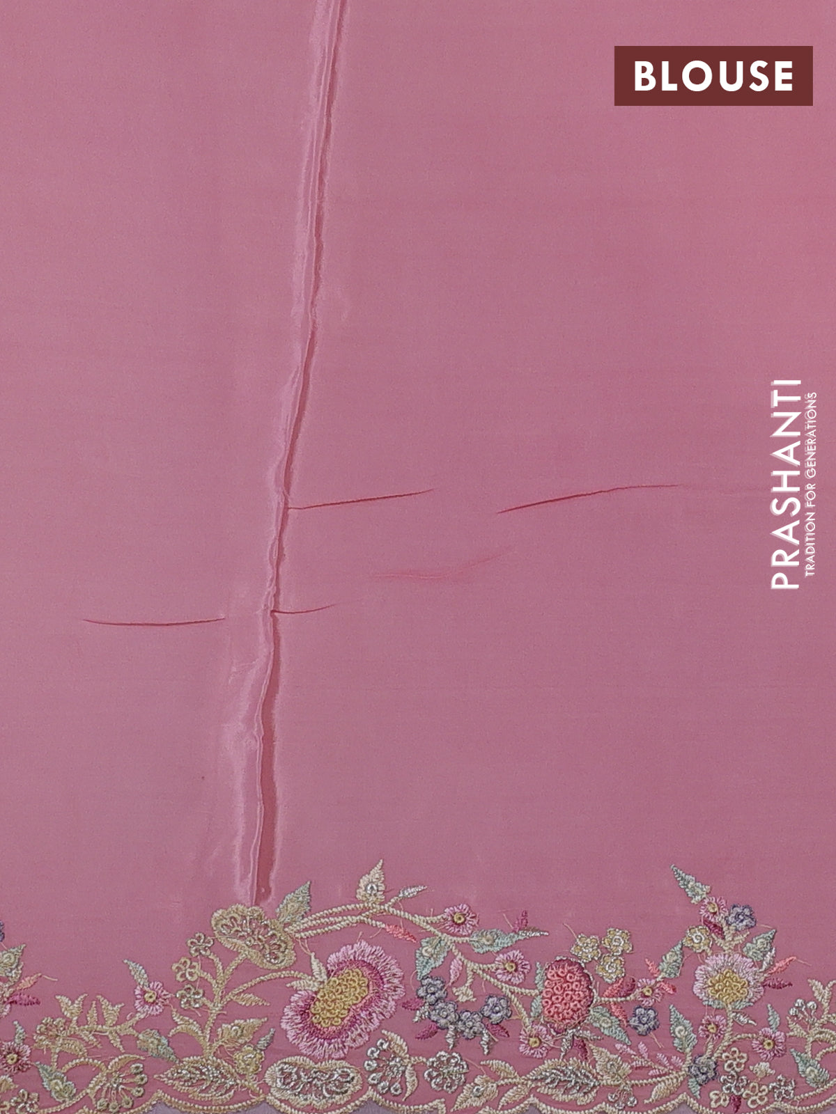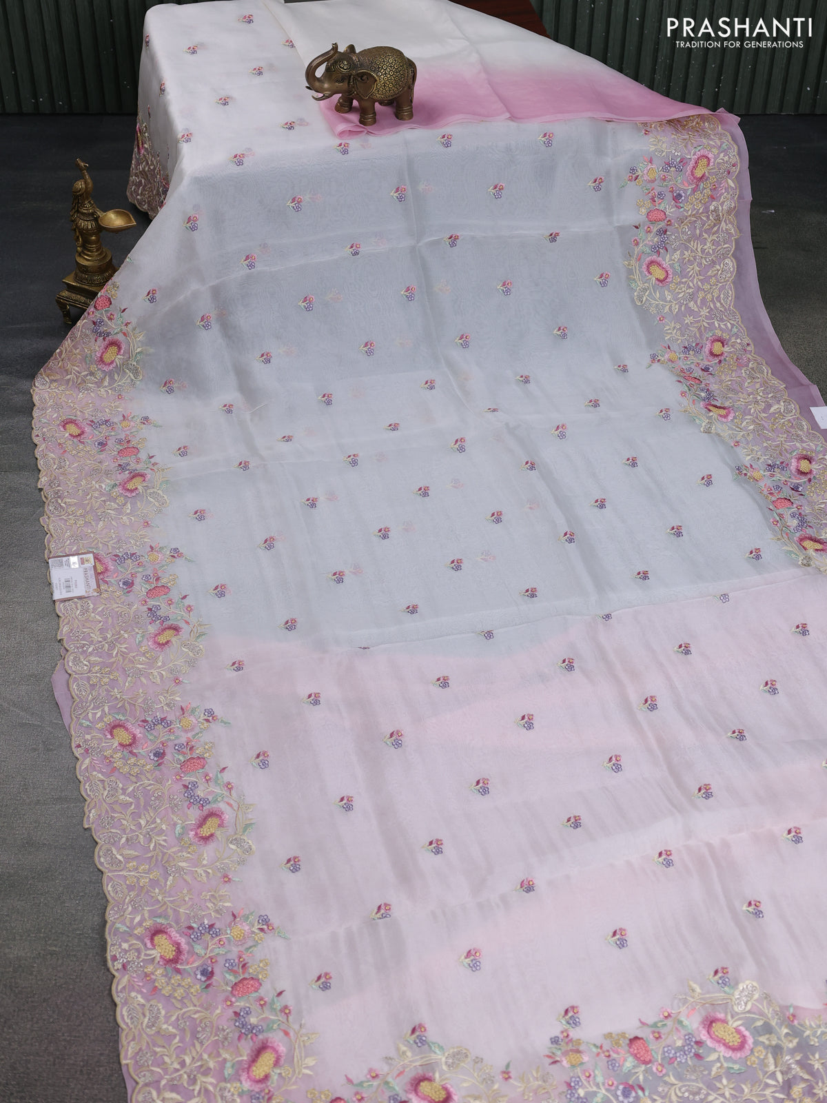 Pure organza silk saree off white and pastel pink with floral embroidery buttas and floral embroidery border