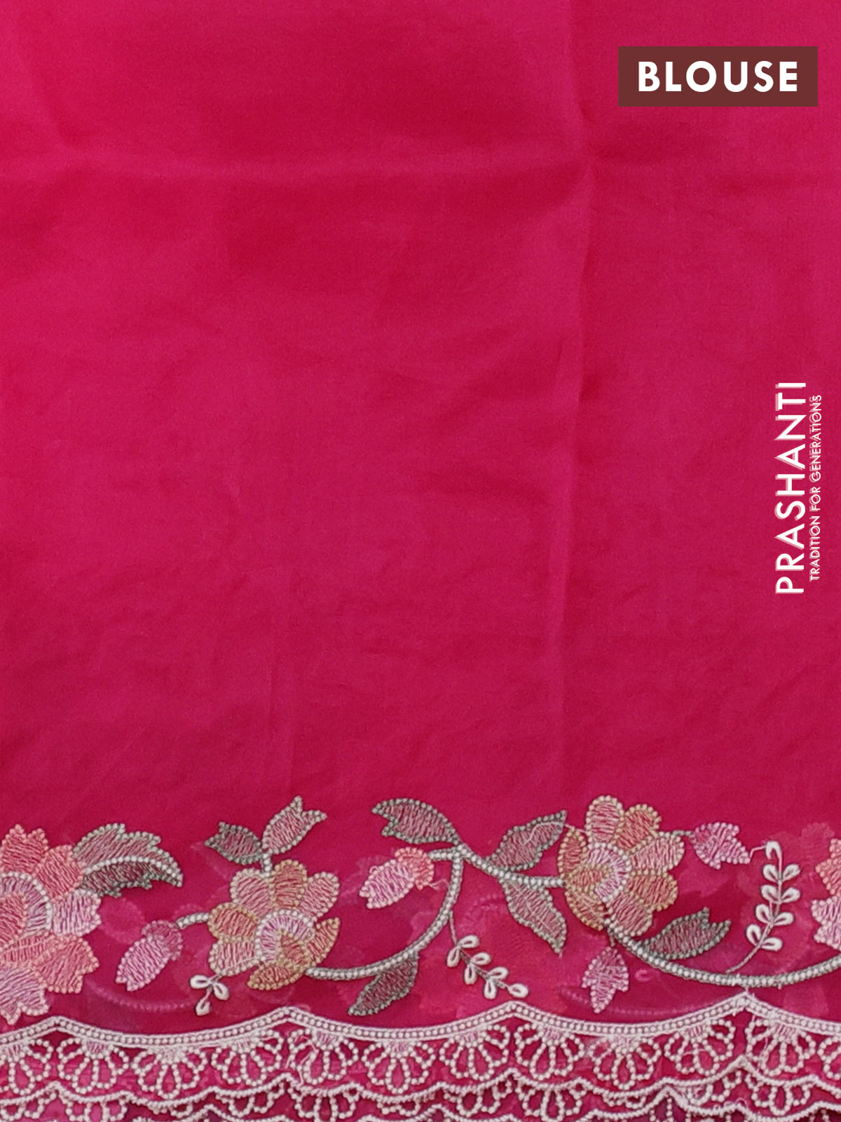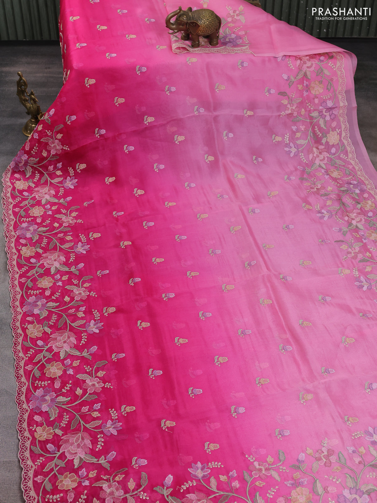 Pure organza silk saree pink with allover embroidery buttas and floral embroidery border