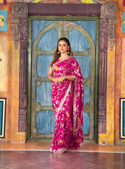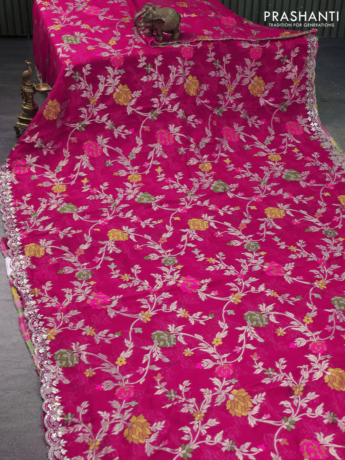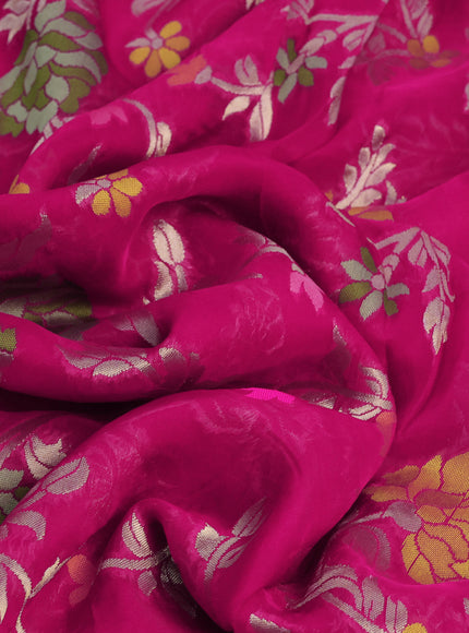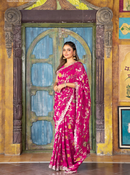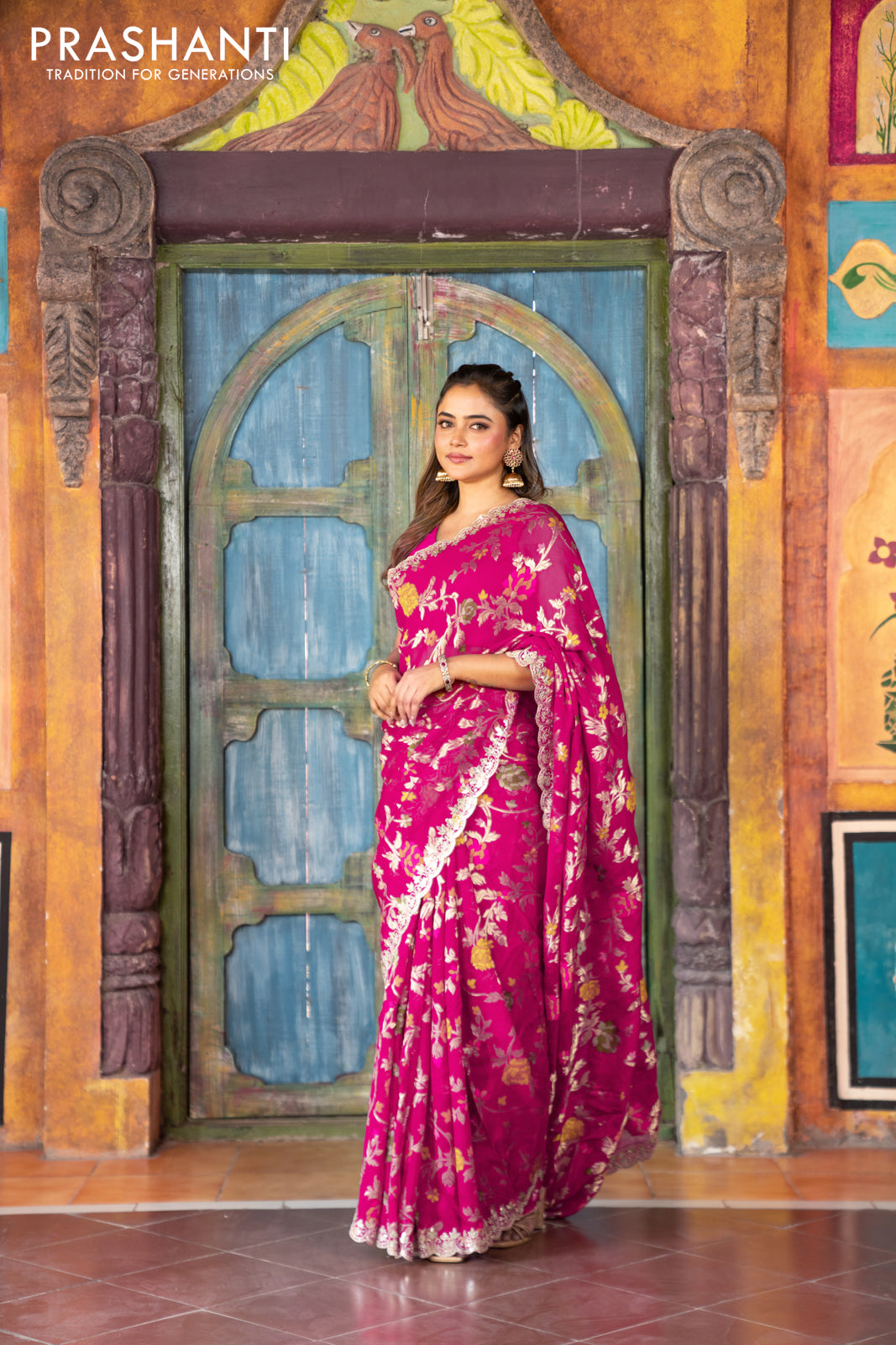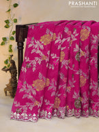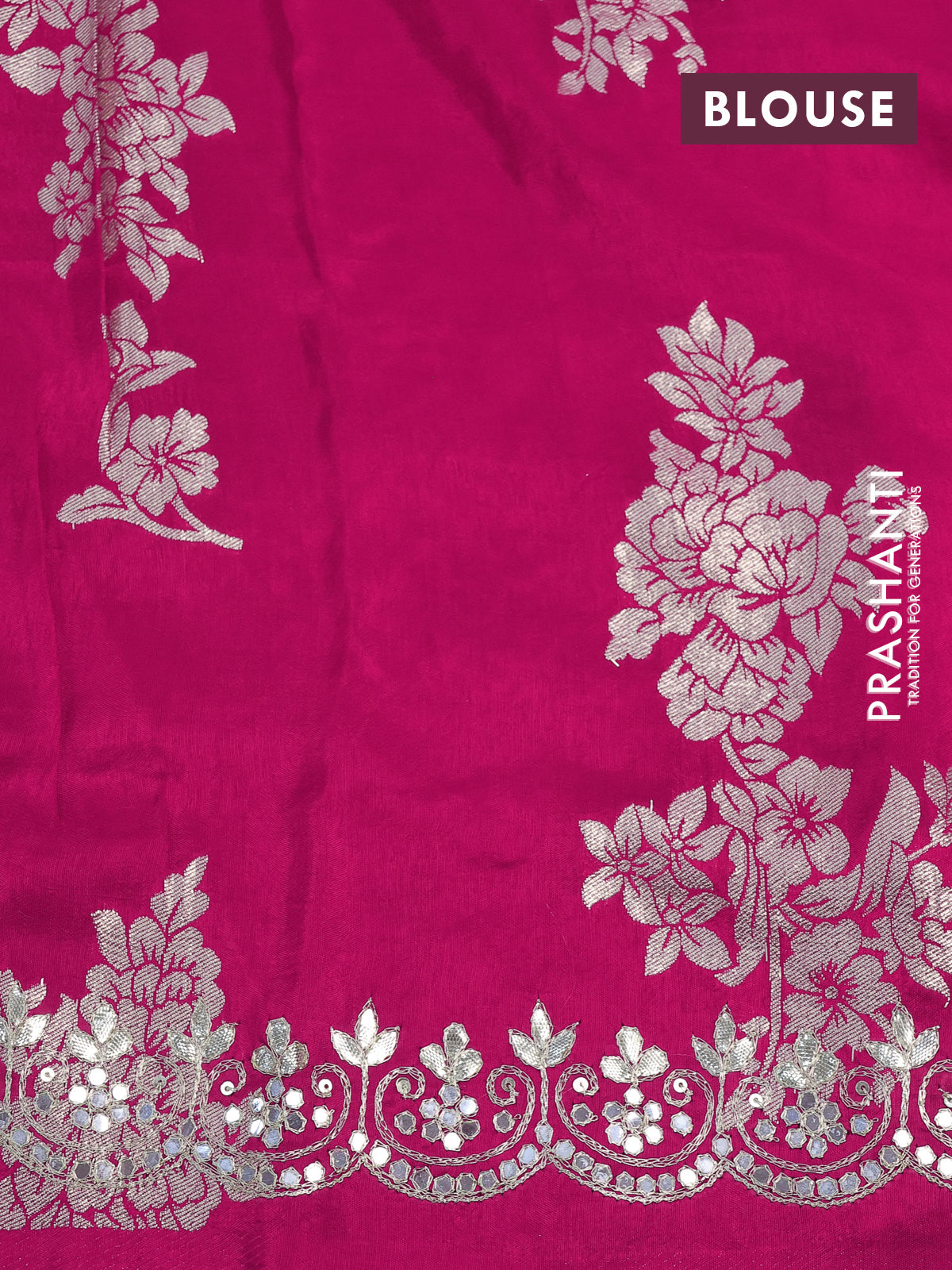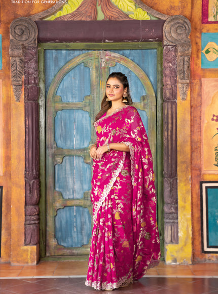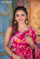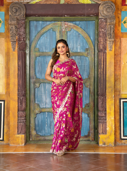 Pure organza silk saree pink with allover thread & zari weaves and gottapatti lace & mirror work border