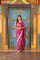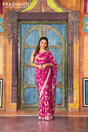 Experience the charm of tradition with our Pure Organza Silk Saree in a delightful pink hue. Adorned with intricate allover thread and zari weaves, this saree captures the essence of craftsmanship. The stunning gottapatti lace and mirror work border add a touch of festive brilliance, making it perfect for special occasions. Drape yourself in this exquisite piece and make a memorable statement.