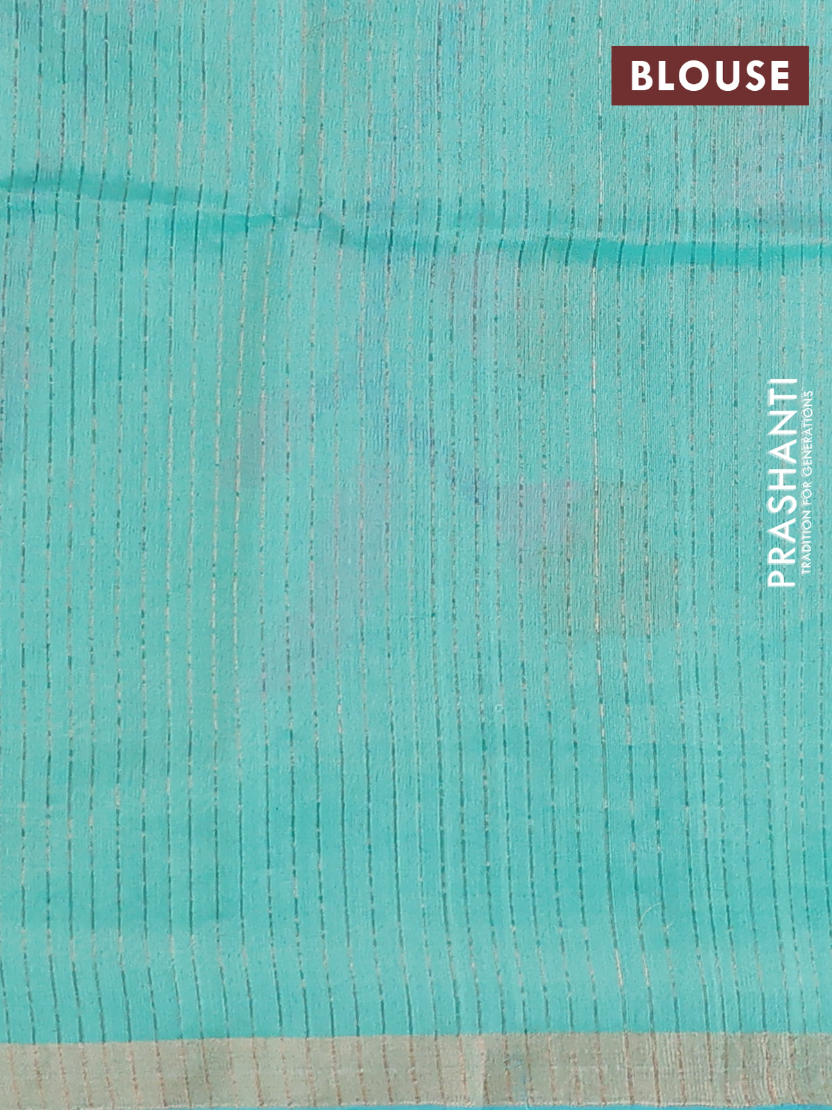 Pure organza silk saree teal green shade with allover sequin stripe pattern and jamdhani design pallu