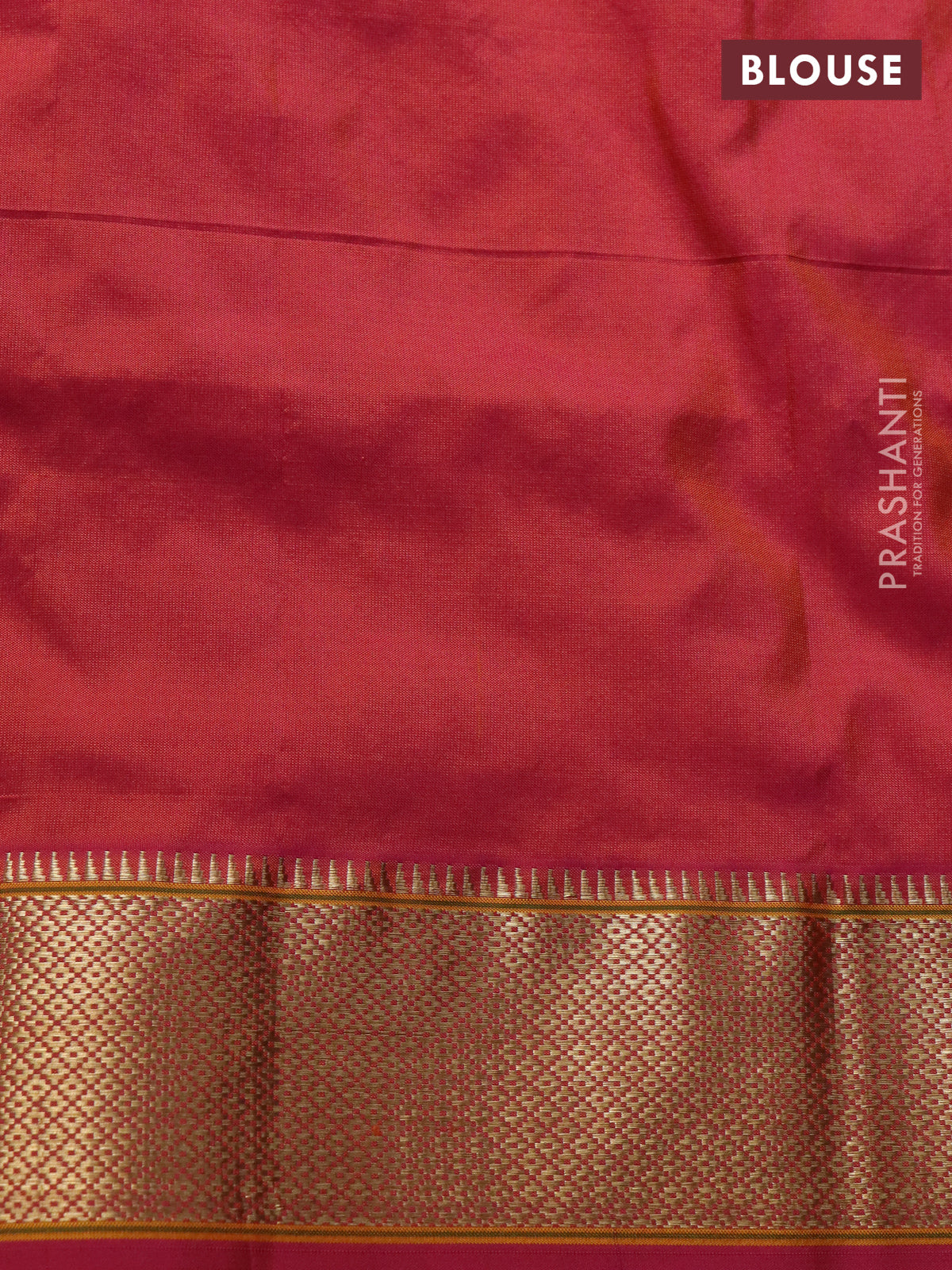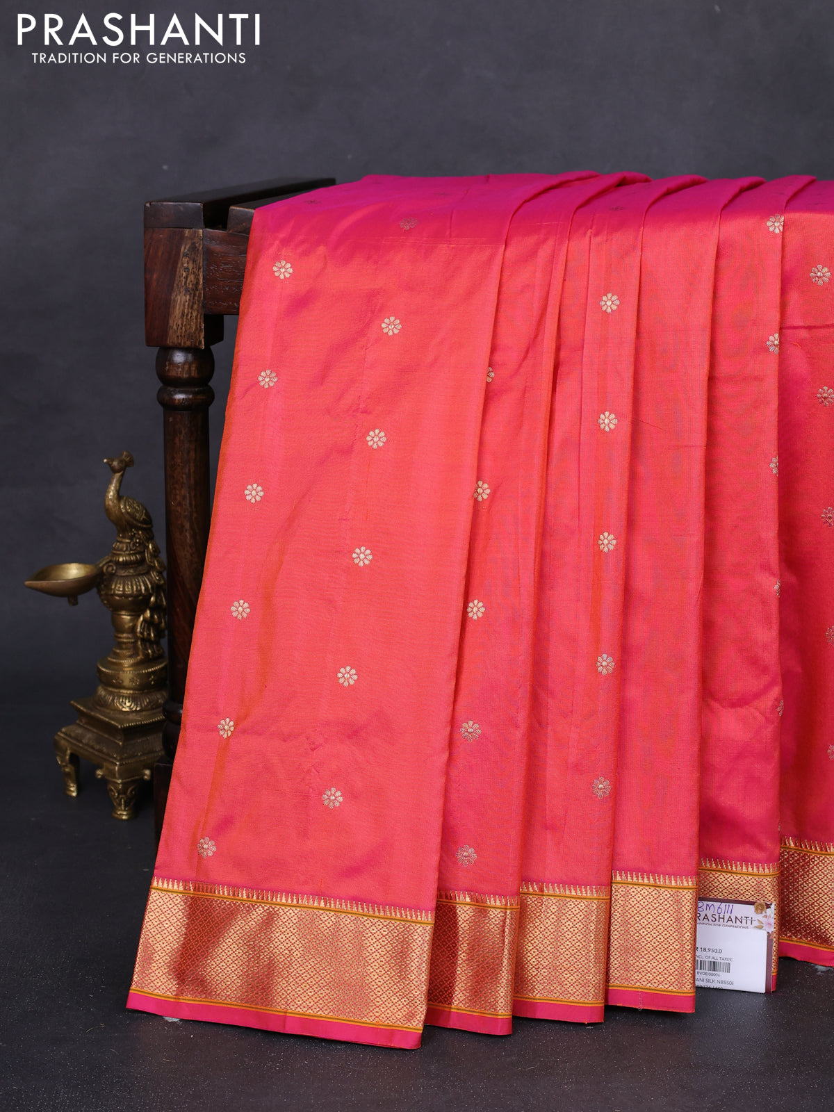 Pure paithani silk saree dual shade of pinkish orange with zari woven buttas and zari woven border