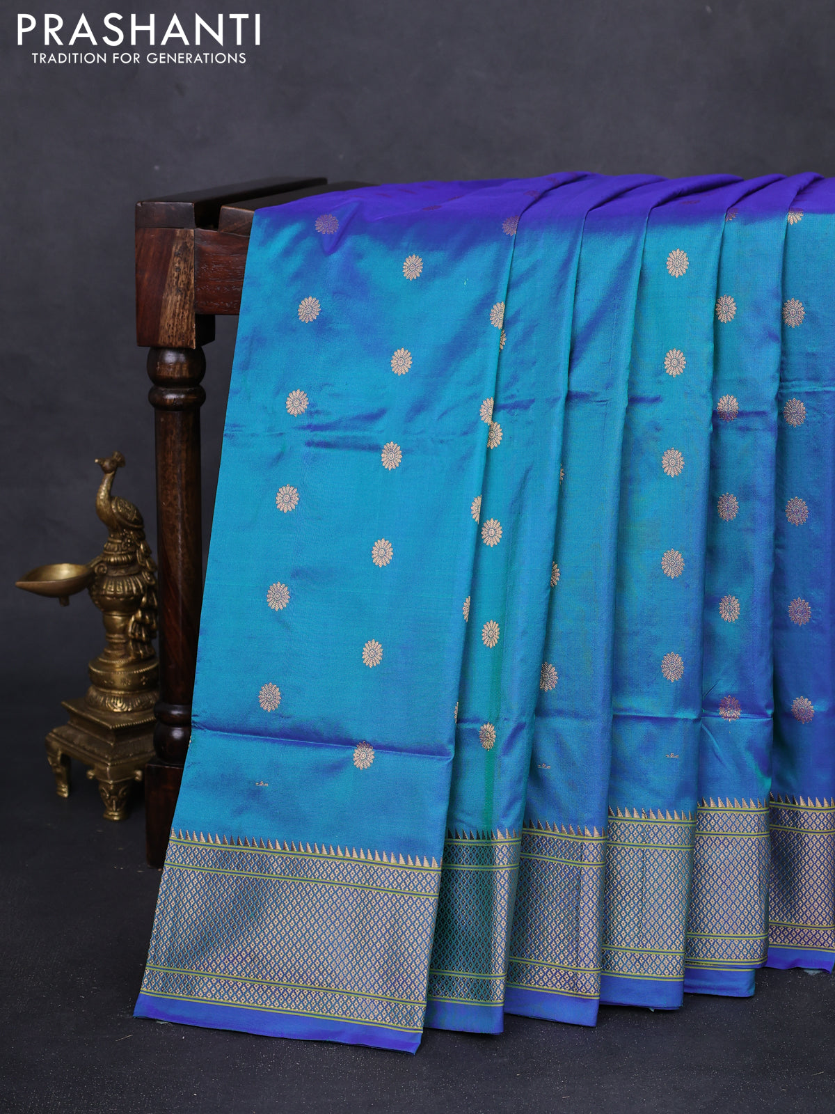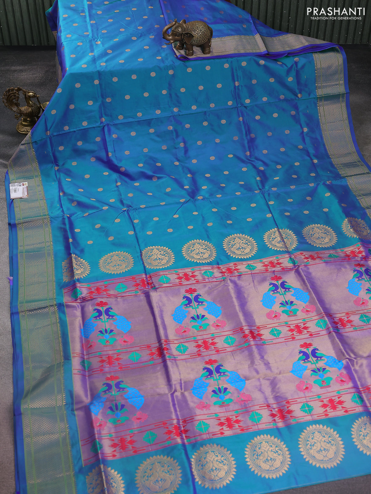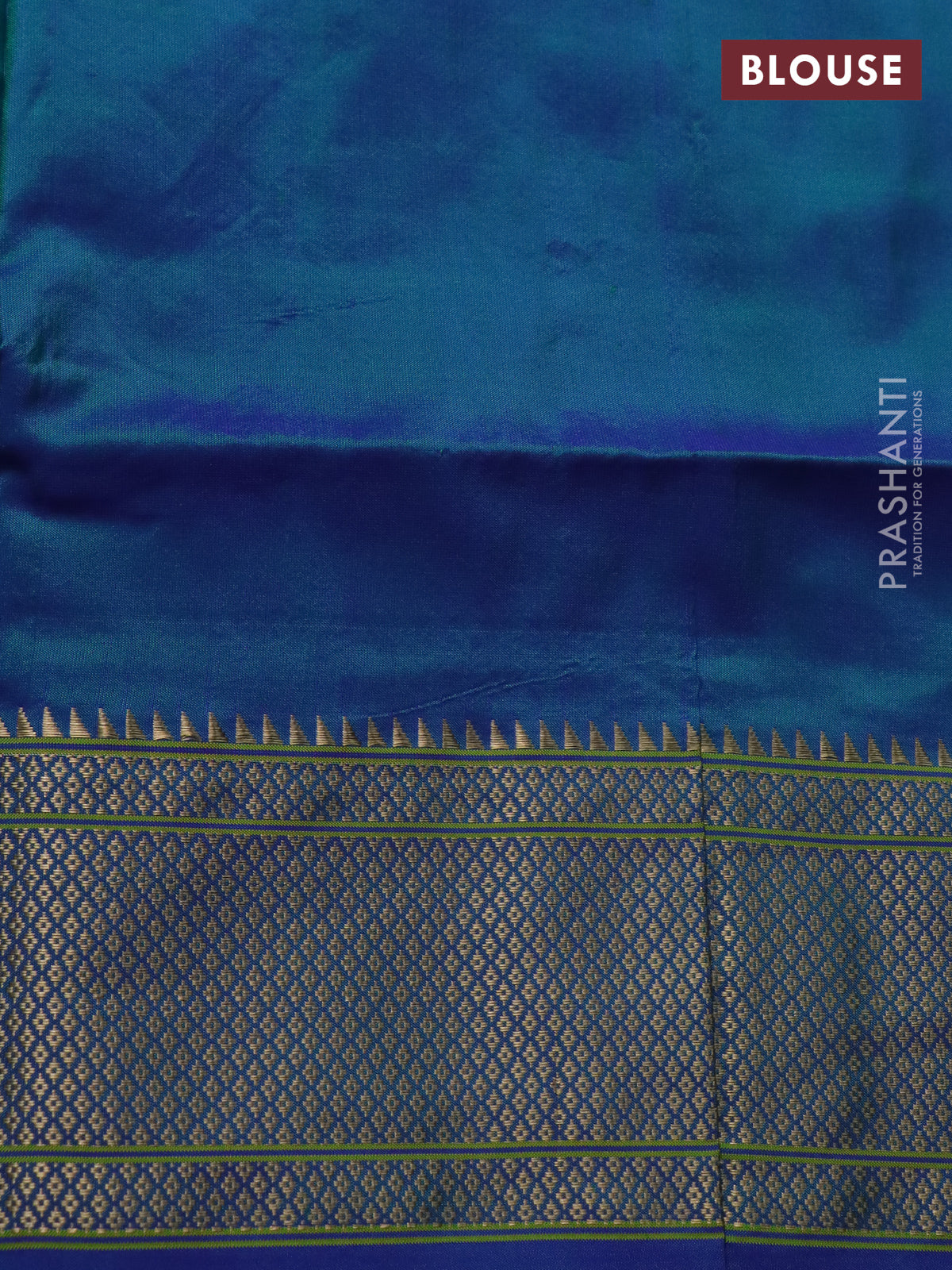 Pure paithani silk saree dual shade of teal green with zari woven buttas and zari woven border
