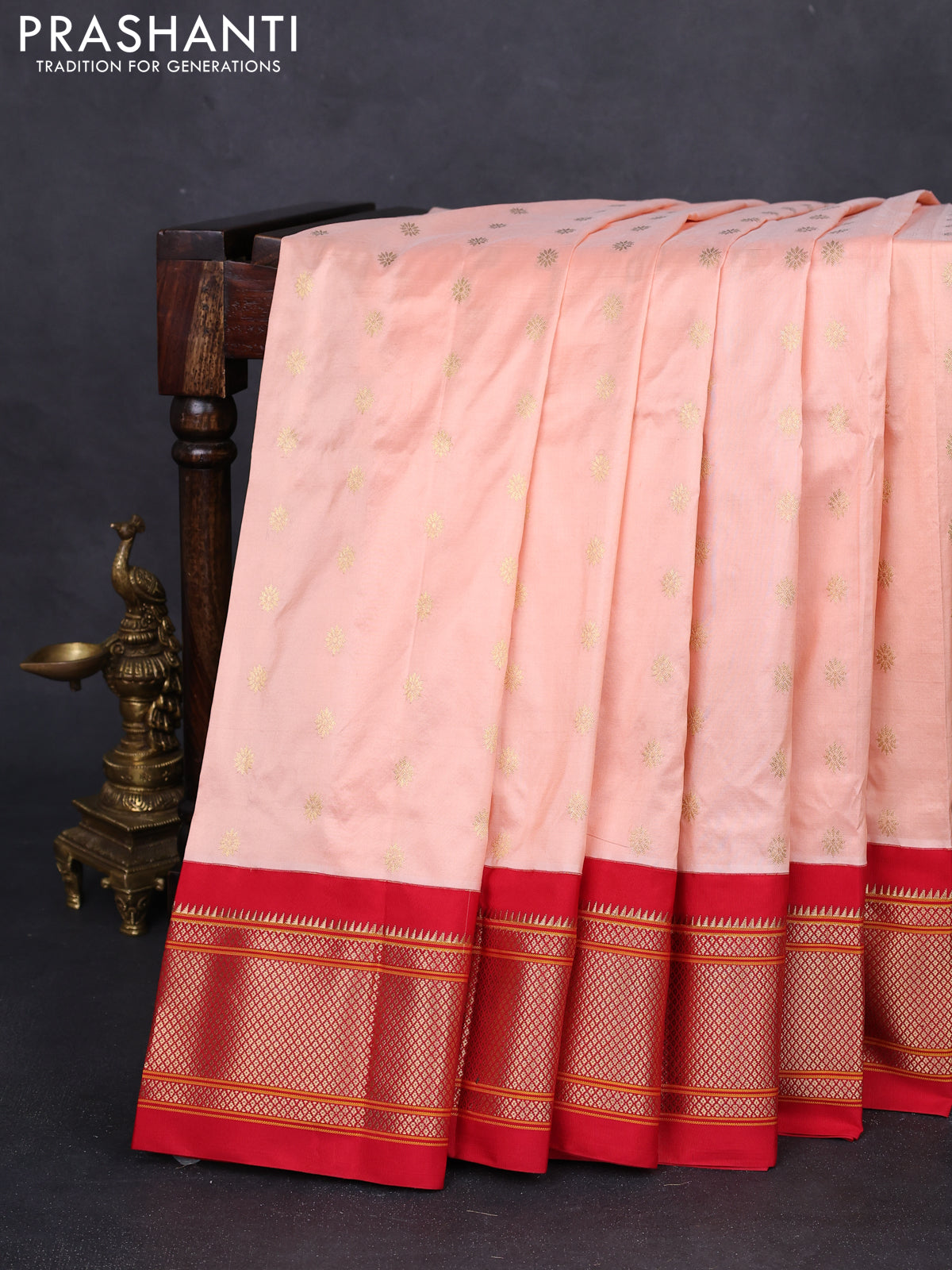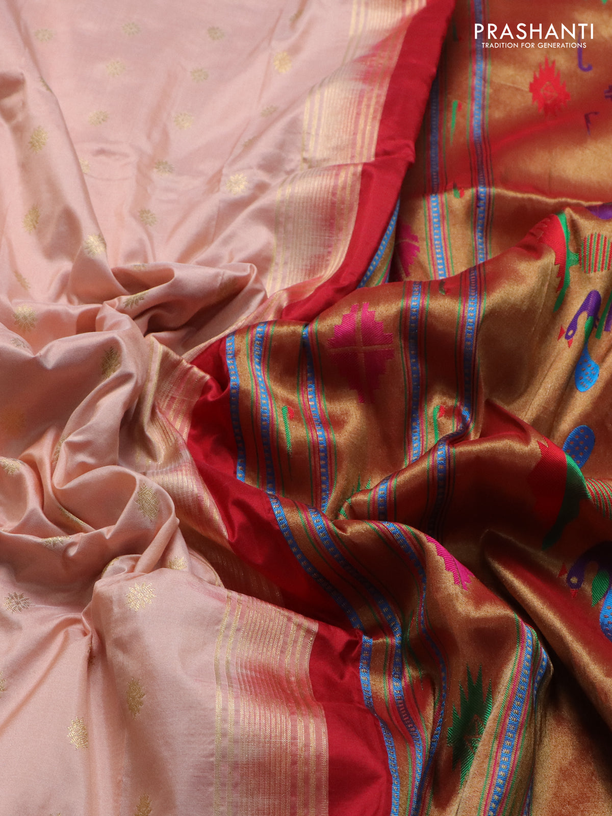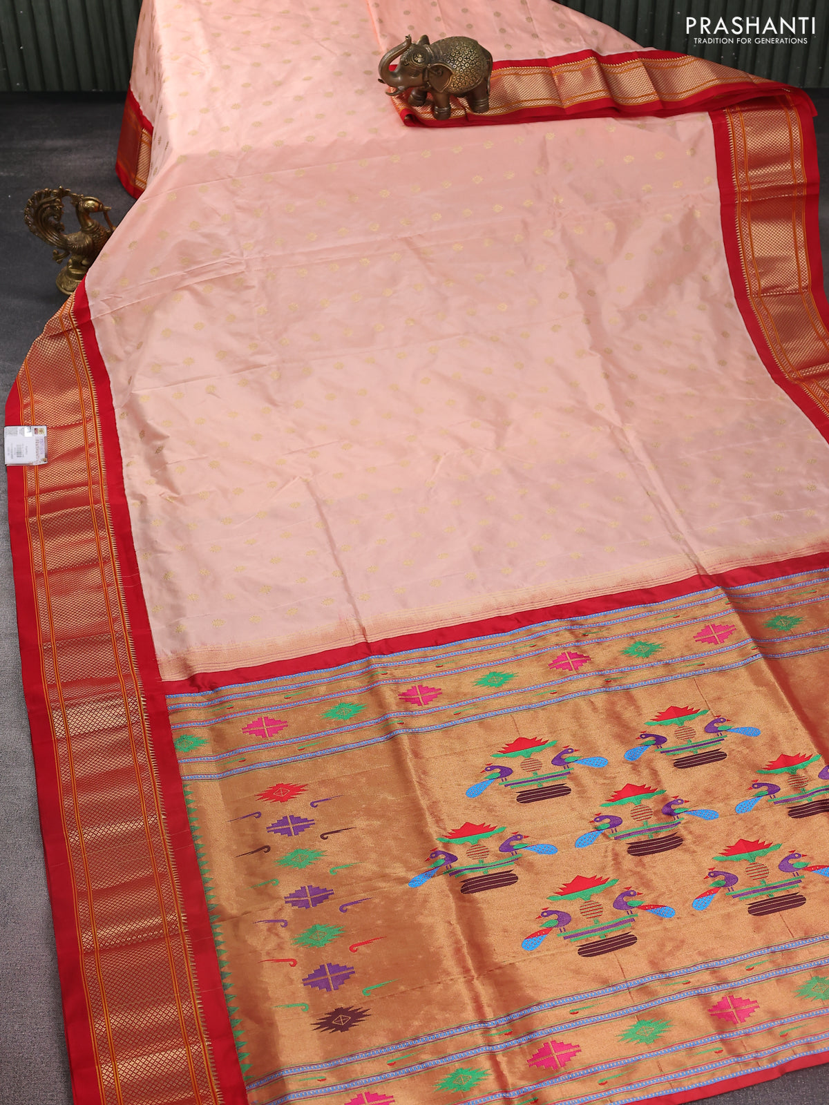 Pure paithani silk saree pale orange and red with zari woven buttas and zari woven korvai border
