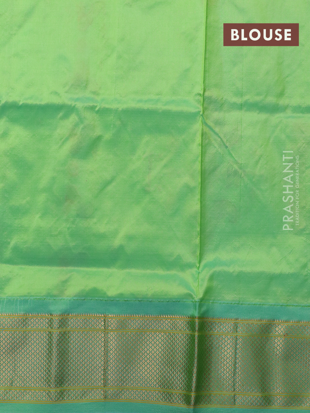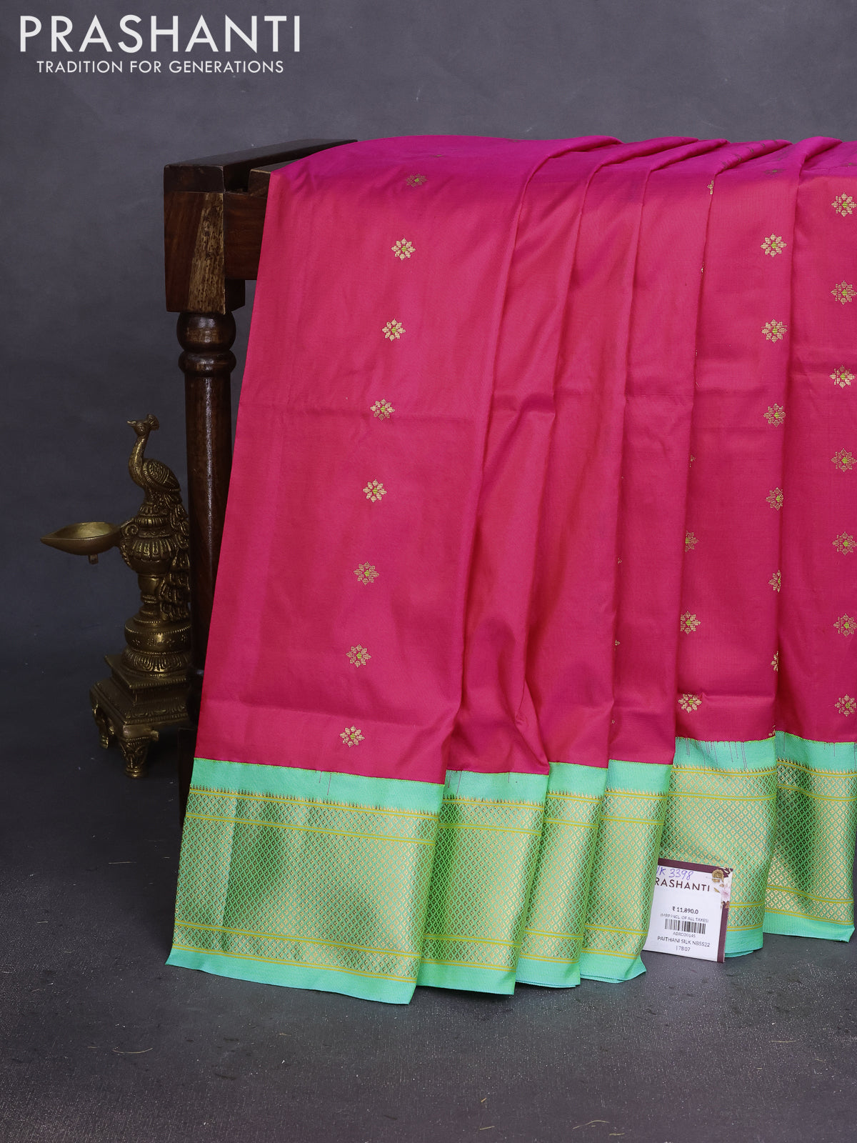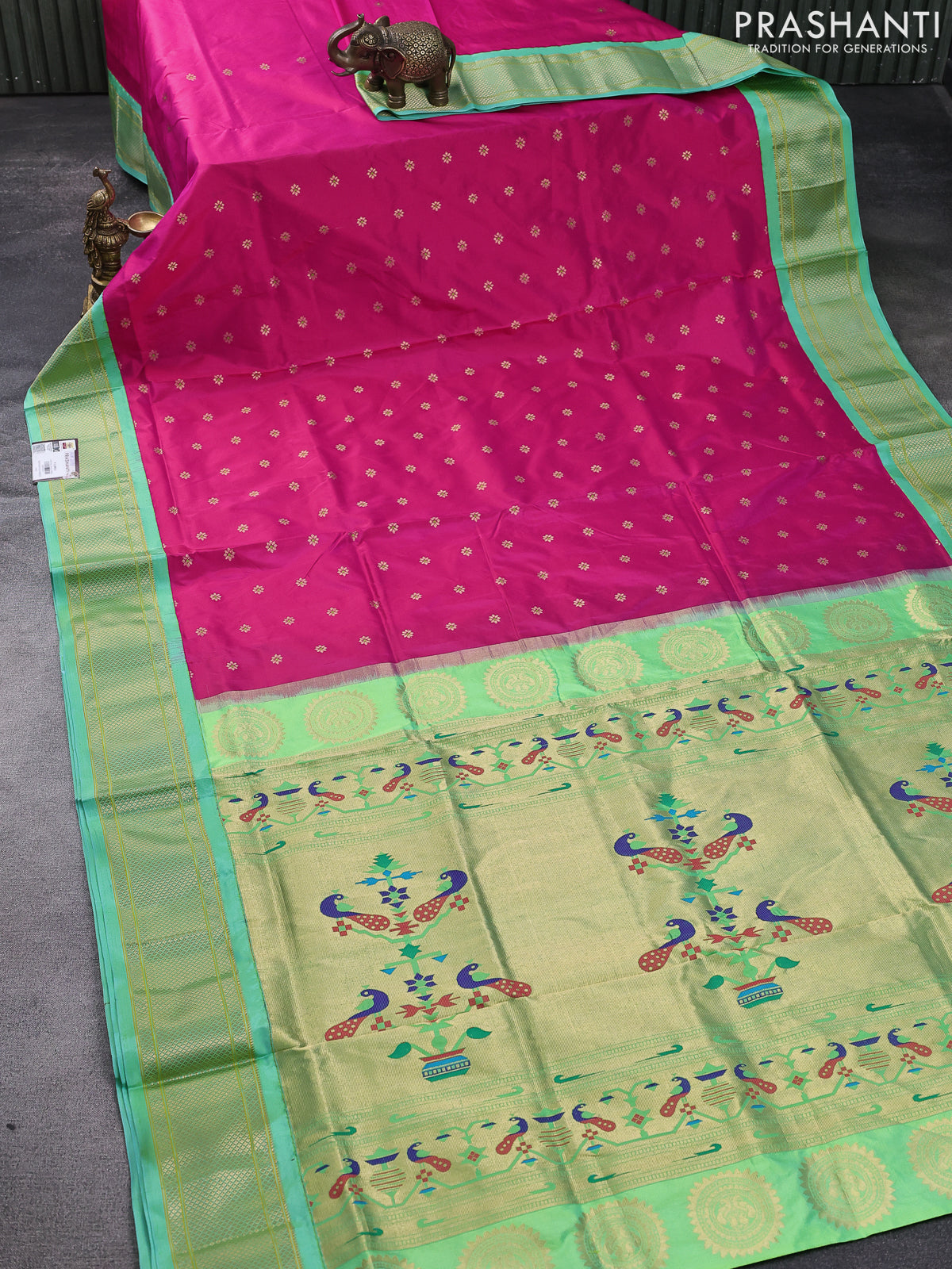 Pure paithani silk saree pink and green shade with allover zari woven buttas and paithani design pallu