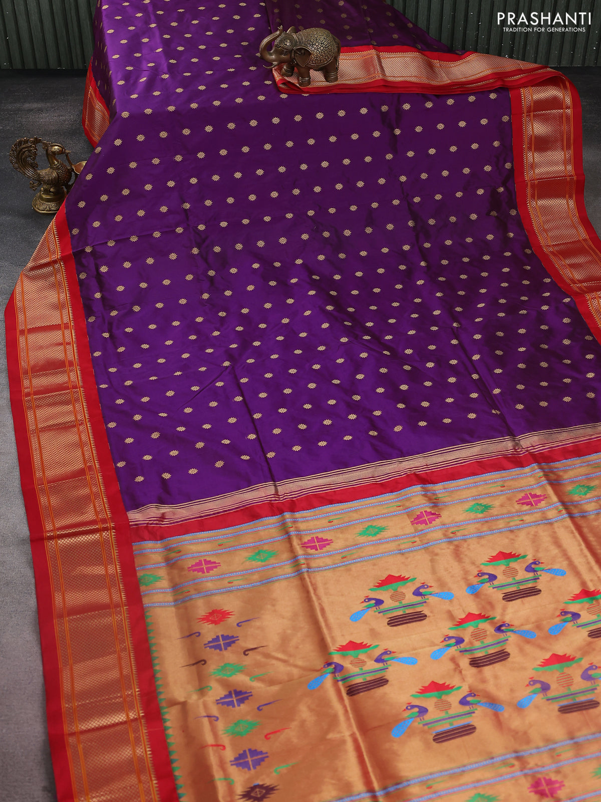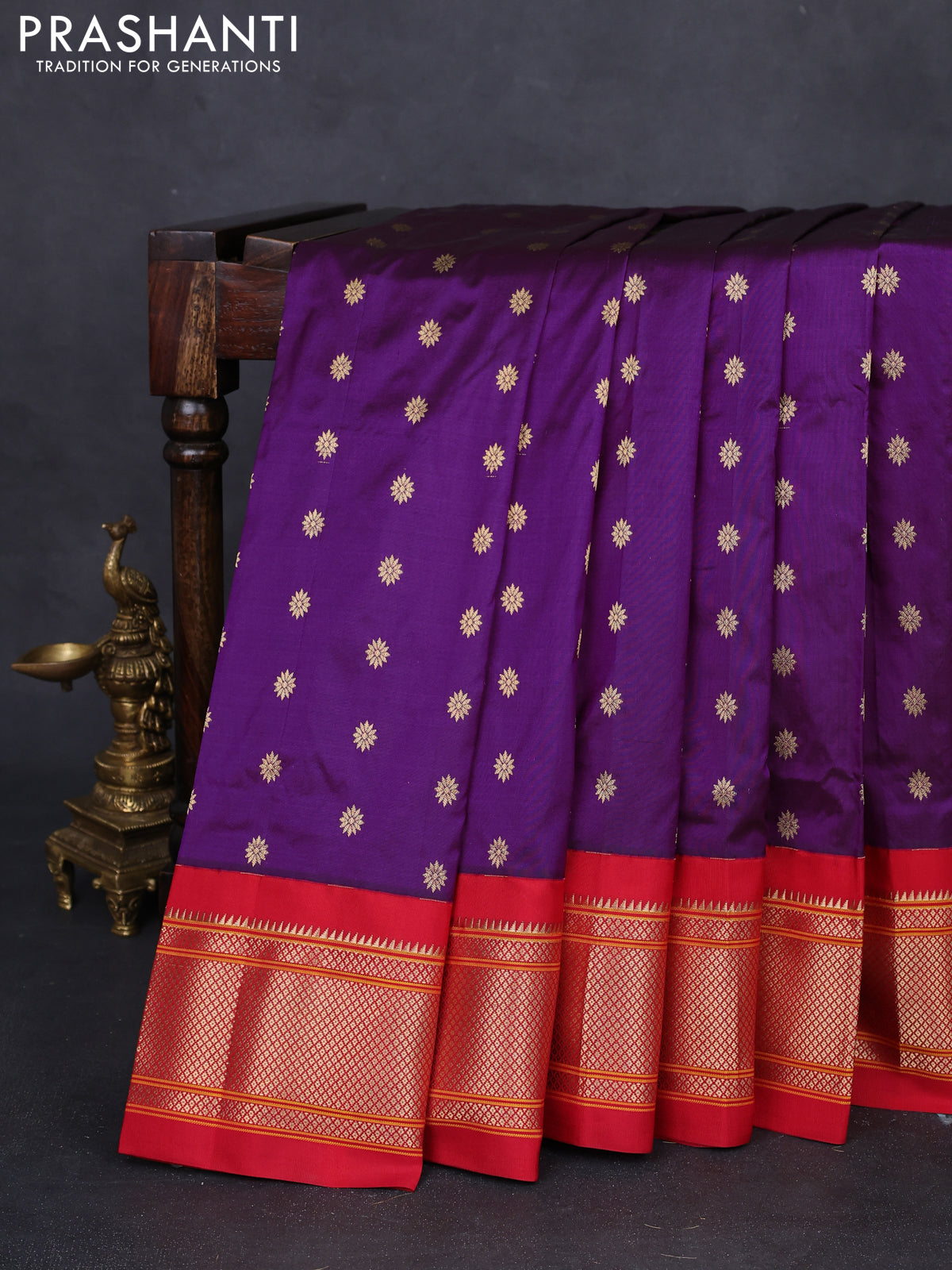 Pure paithani silk saree purple and red with zari woven buttas and zari woven korvai border