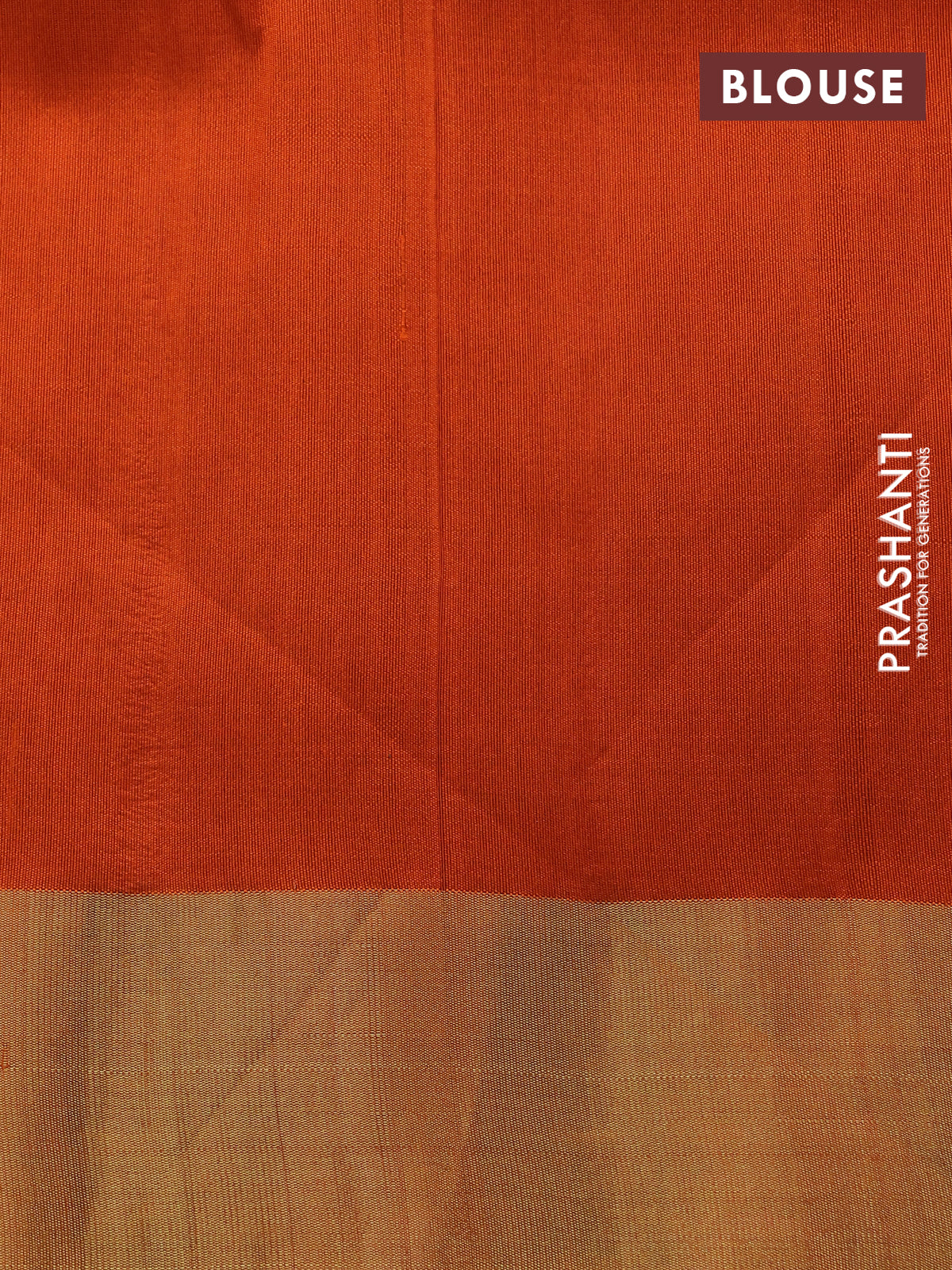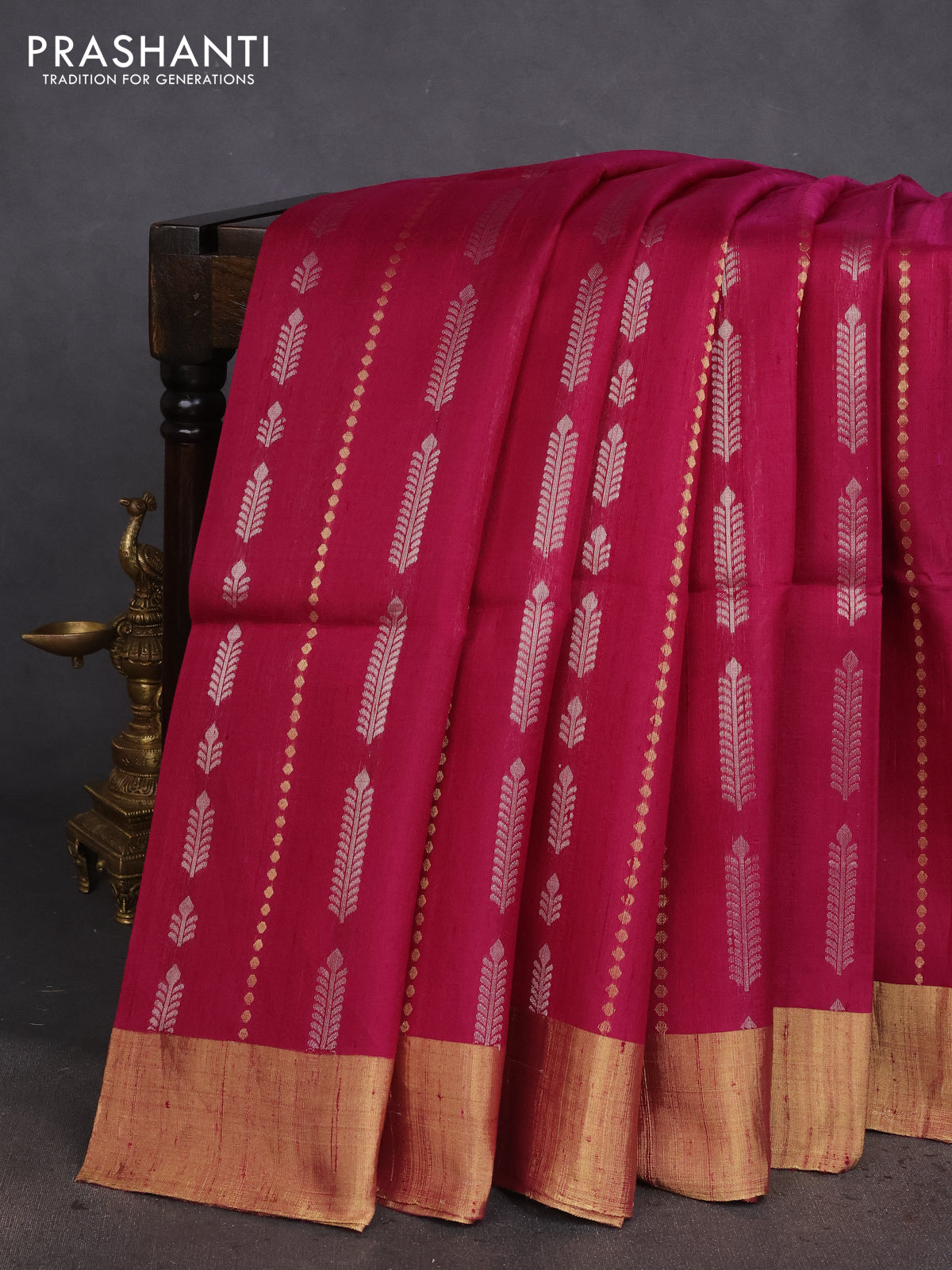 Pure raw silk saree dark magenta pink and orange with allover silver & gold zari weaves and zari woven border