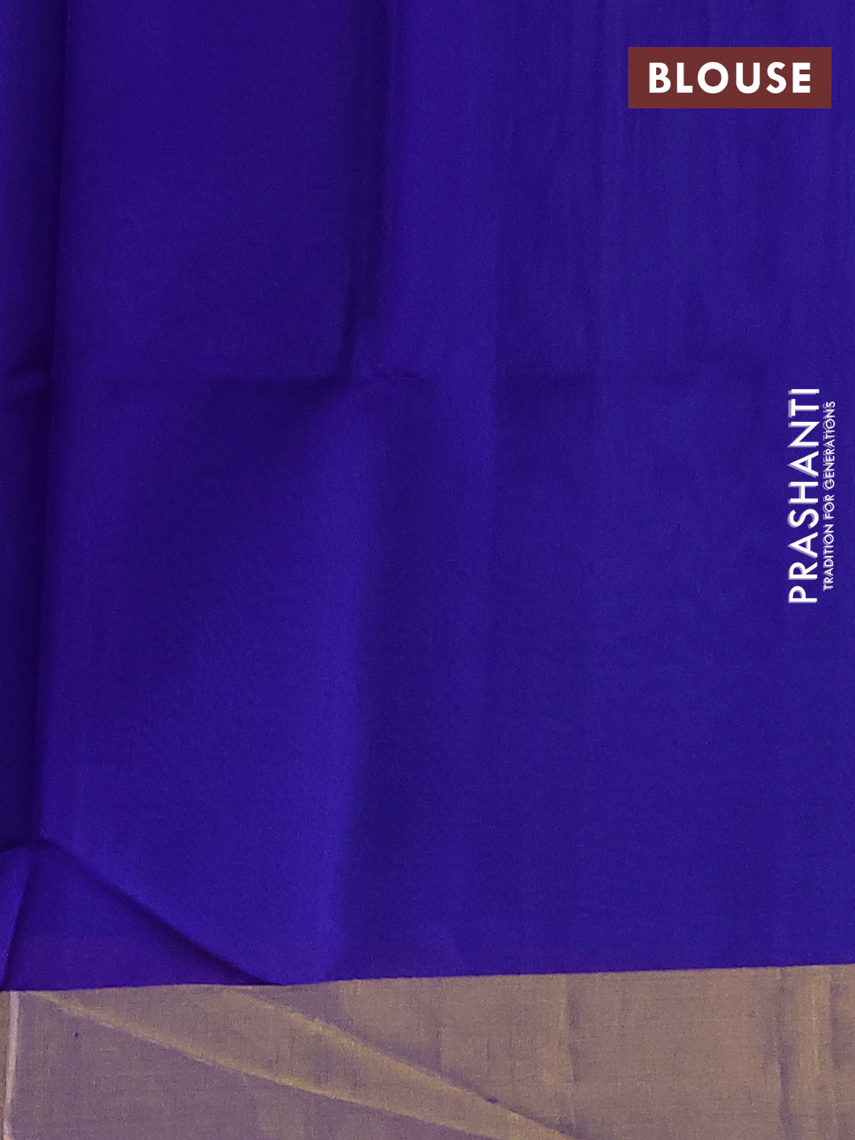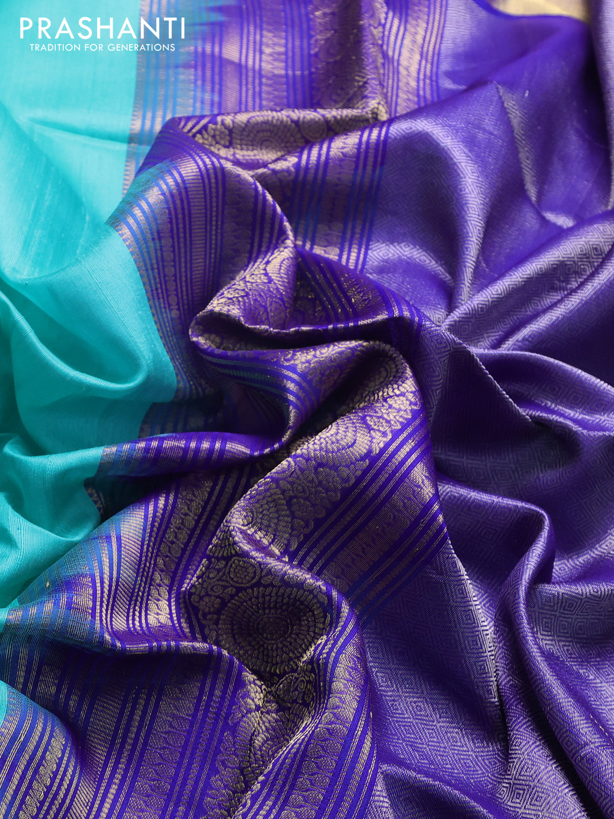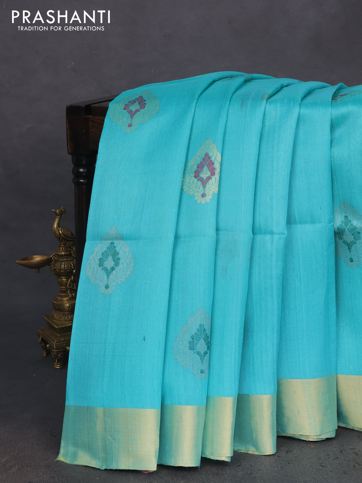 Pure raw silk saree teal blue and blue with silver & gold zari woven buttas and zari woven border