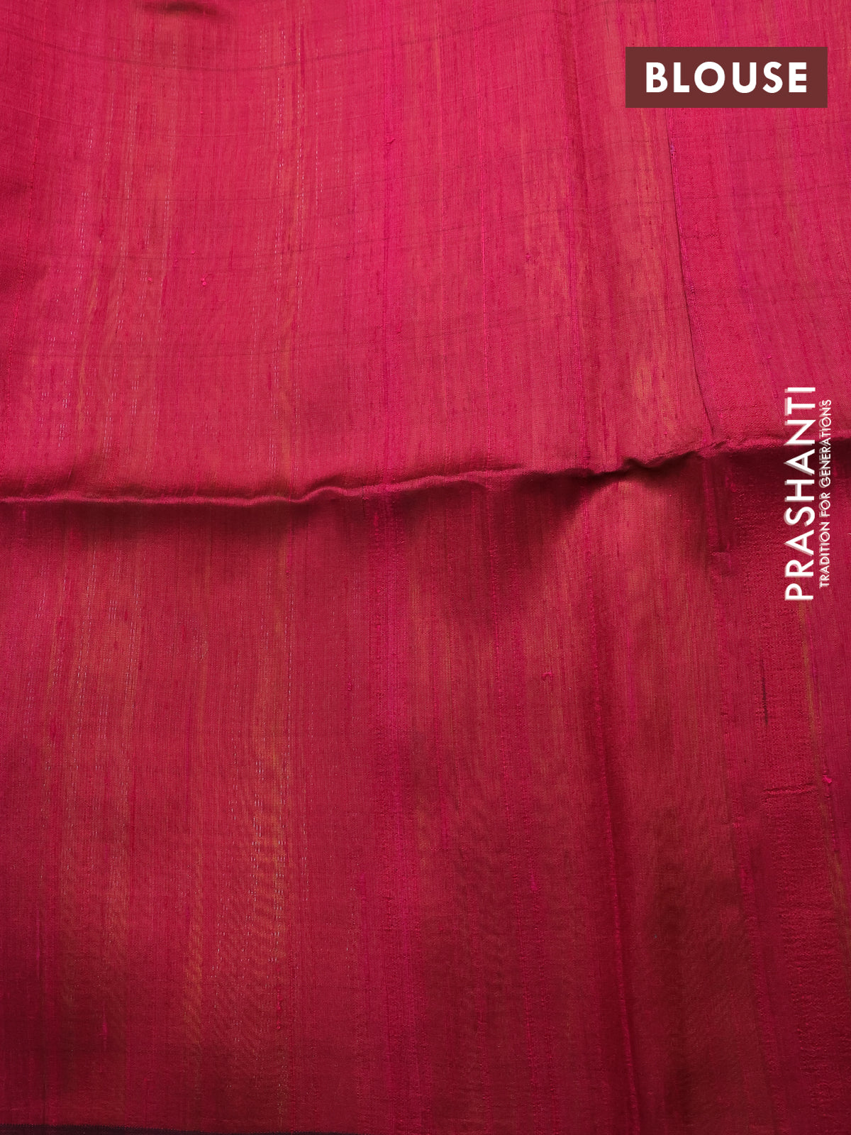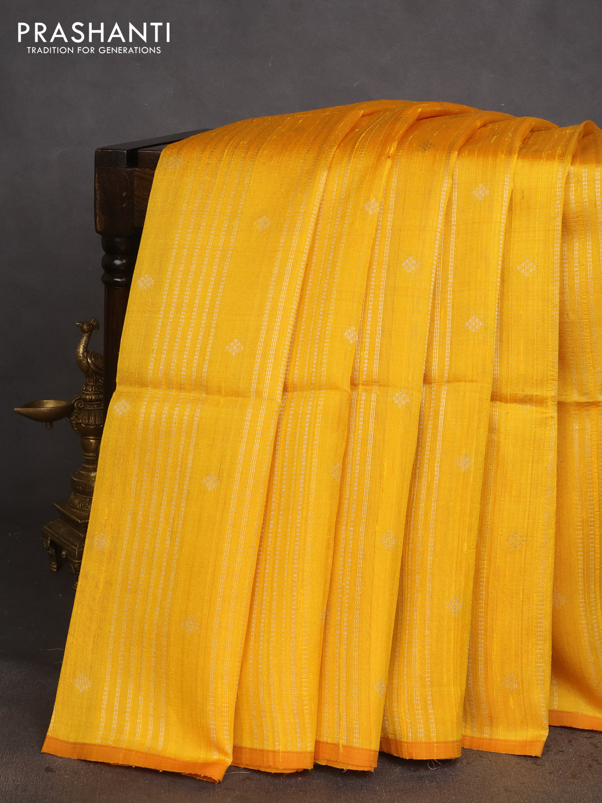 Pure raw silk saree yellow and dark pink with allover silver zari weaves in borderless style