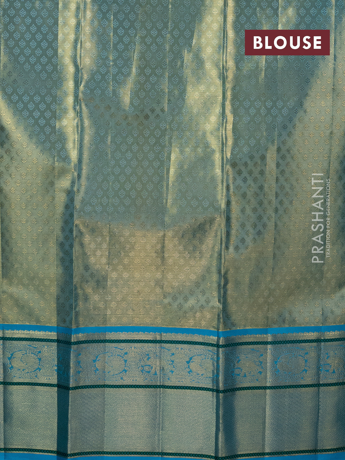 Pure silk tissue lehenga dhawani multi colour and light blue with allover zari woven brocade weaves and long rich zari woven border