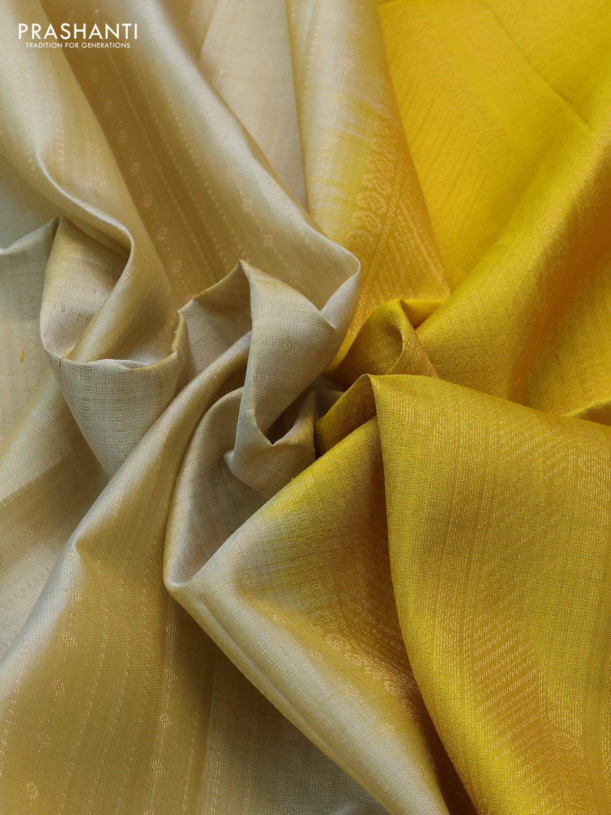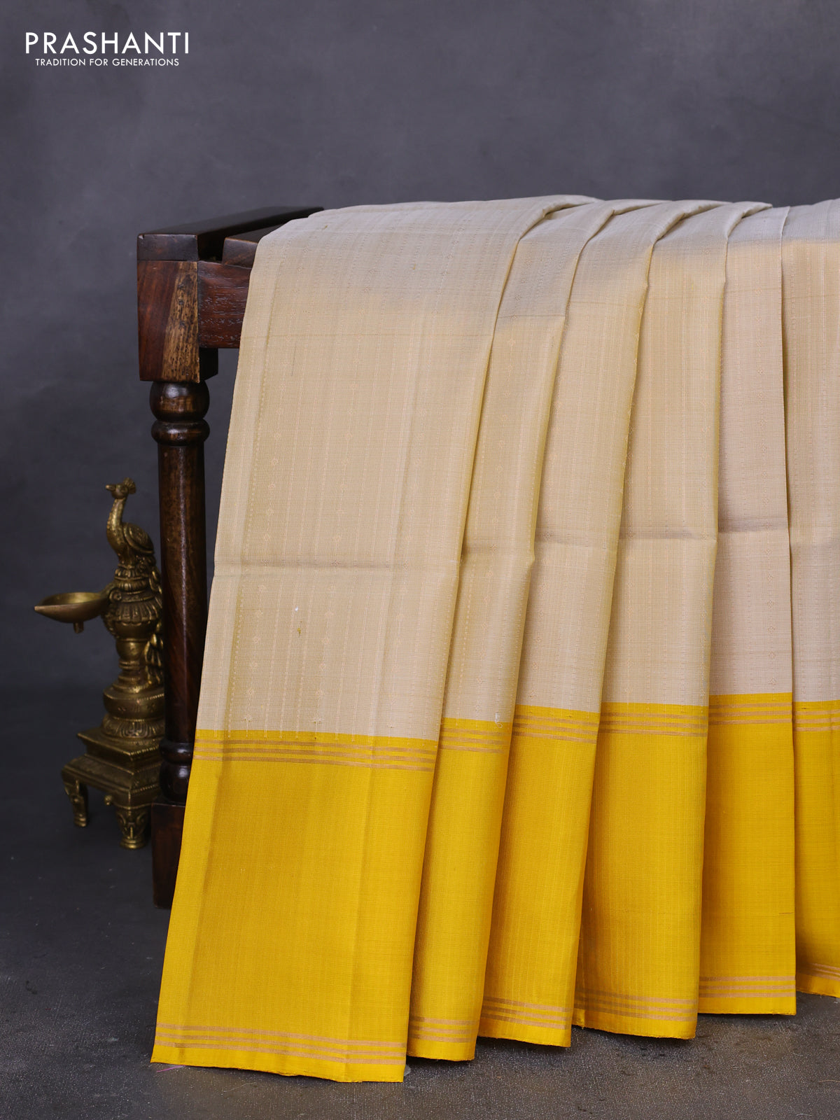 Pure soft silk saree beige and yellow with allover zari weaves and rettapet zari woven border