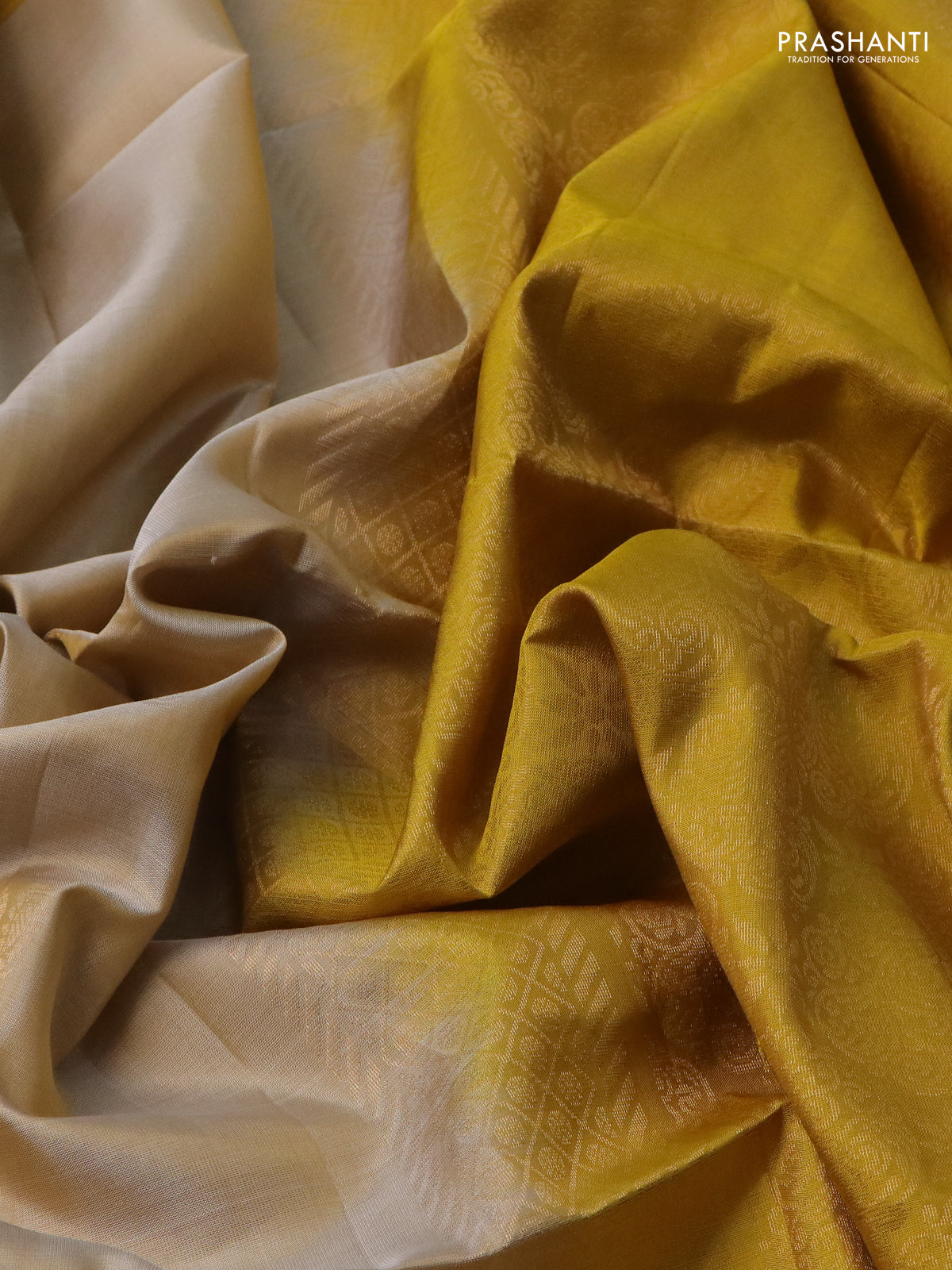 Pure soft silk saree beige and yellow with zari woven floral buttas and rettapet zari woven border
