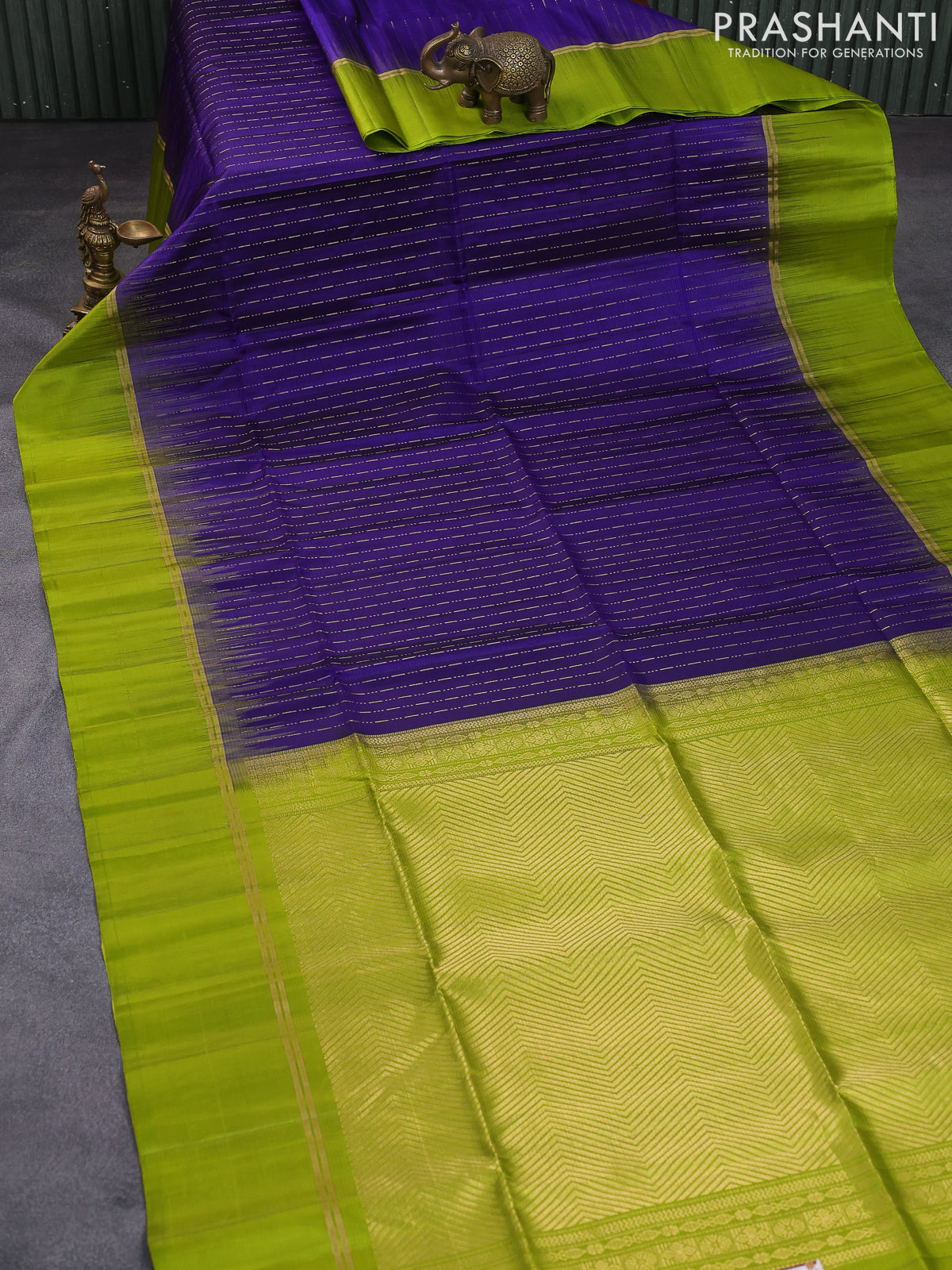 Pure soft silk saree blue and light green with allover zari weaves and zari woven simple border