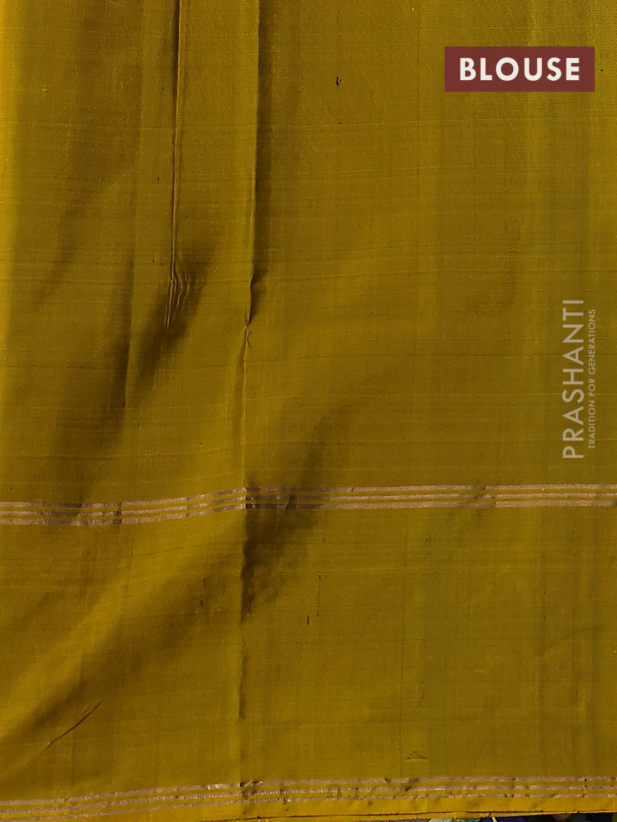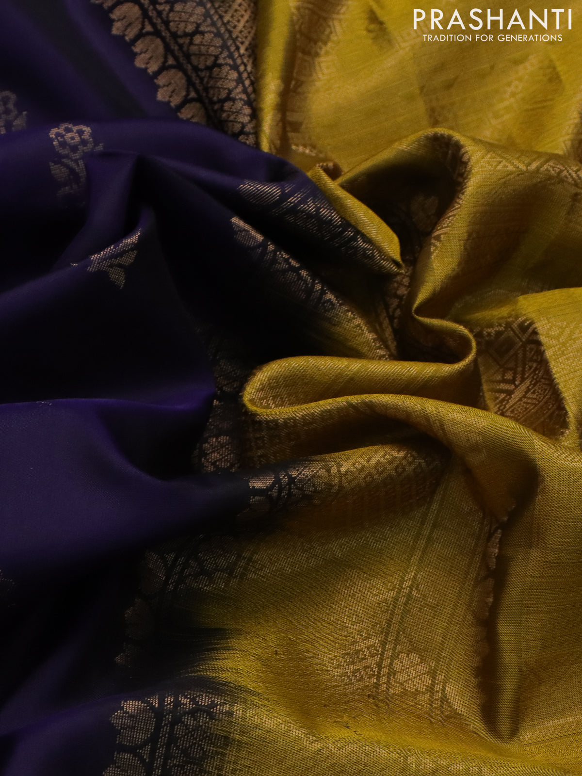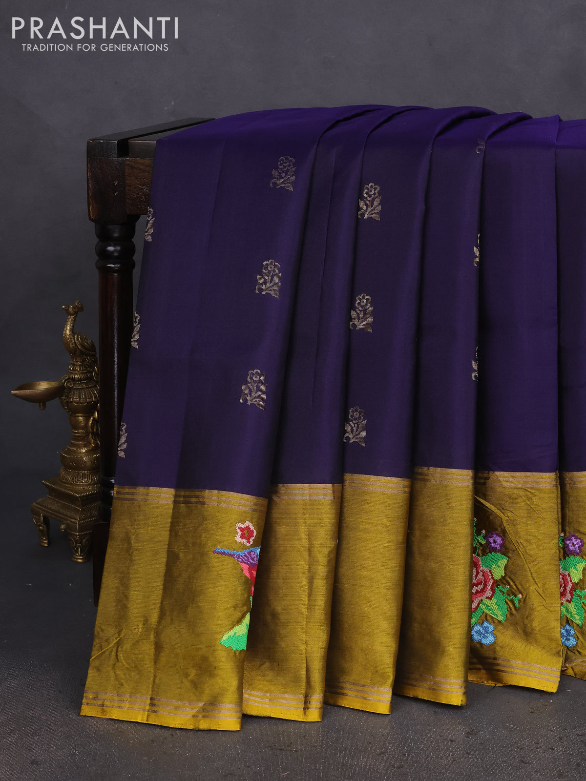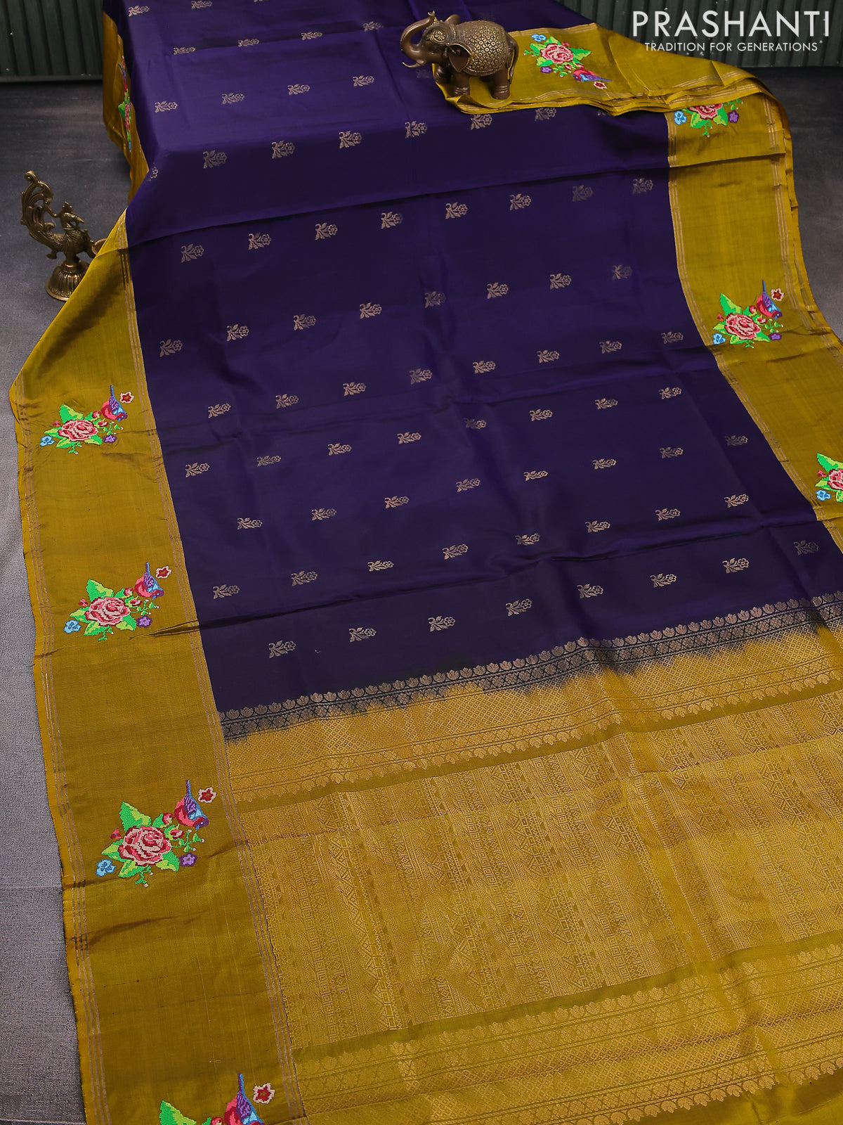 Pure soft silk saree blue and mustard yellow with zari woven floral buttas and zari woven embroidery butta border