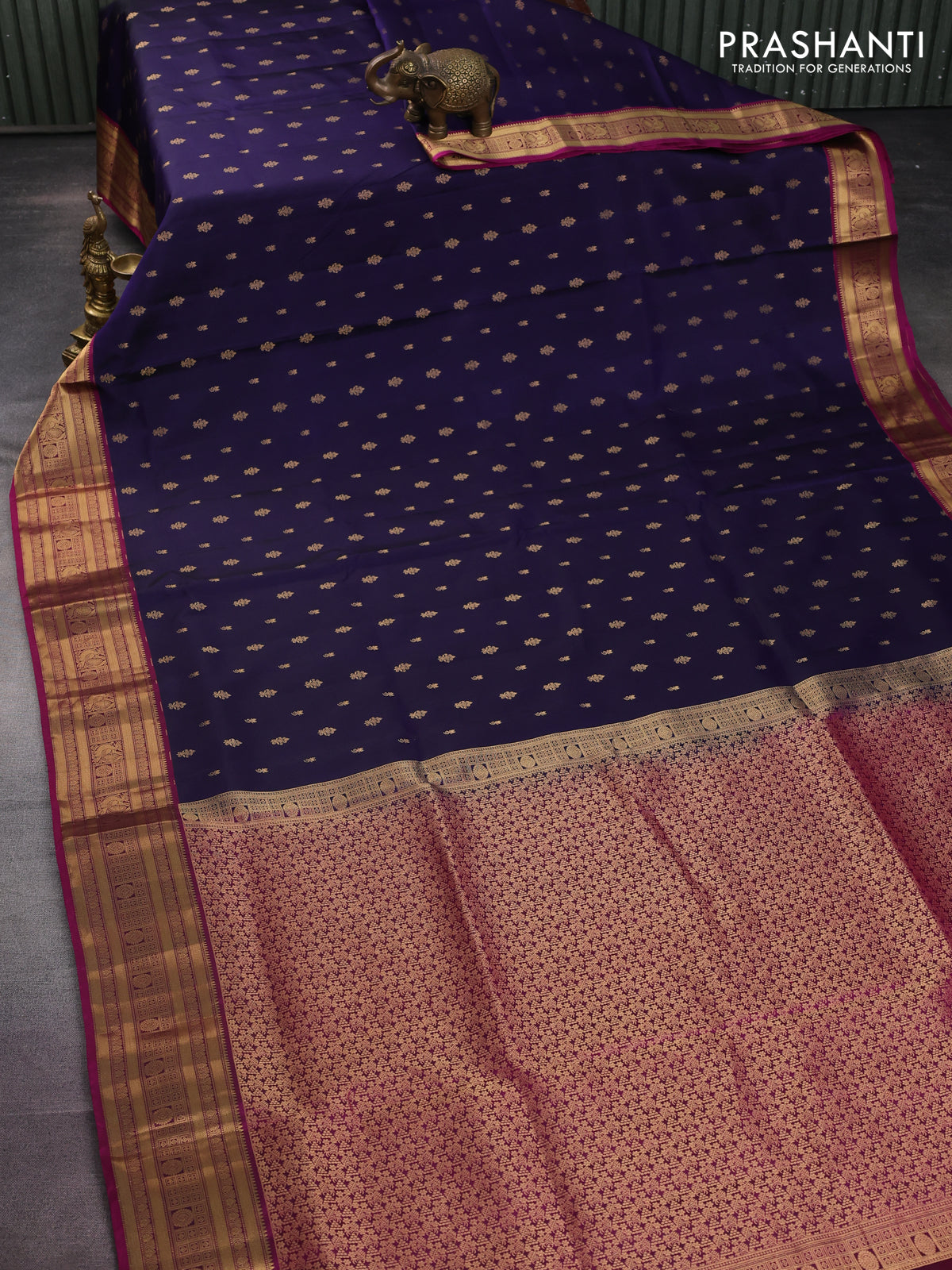 Pure soft silk saree dark blue and dark magenat pink with allover zari woven buttas and zari woven border