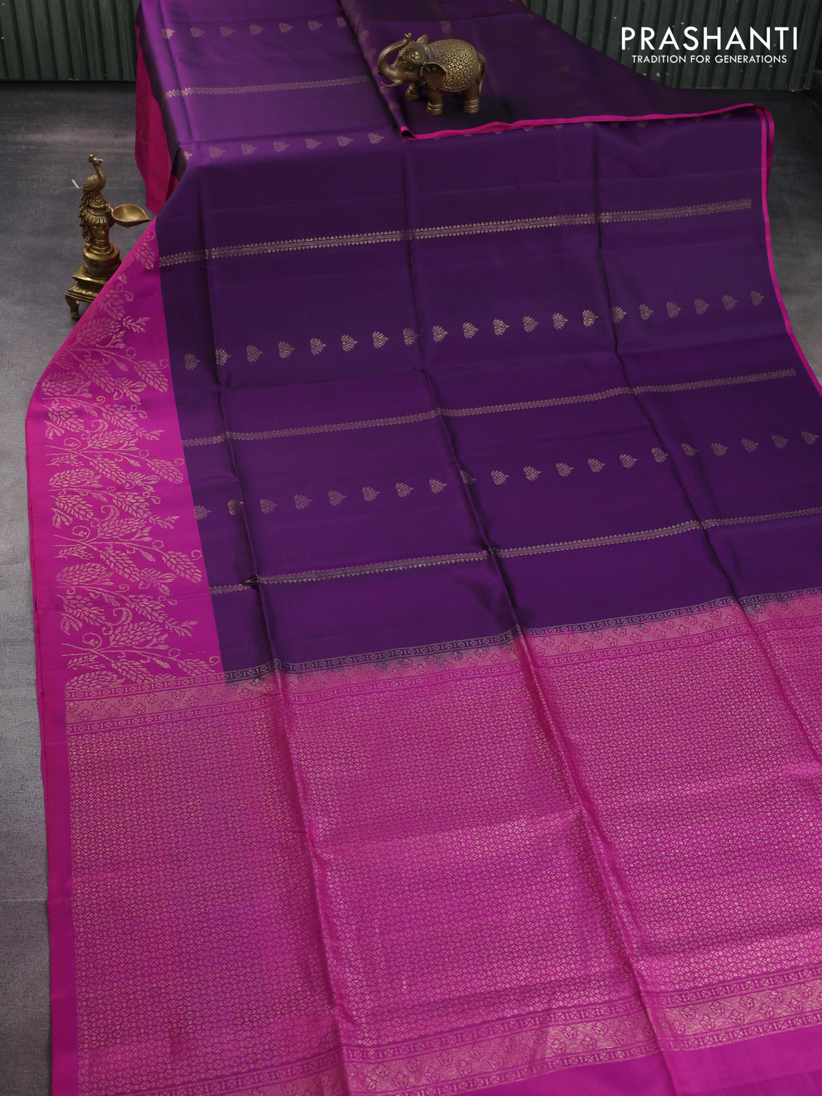 Pure soft silk saree deep violet and magenta pink with zari woven buttas and rich zari woven border