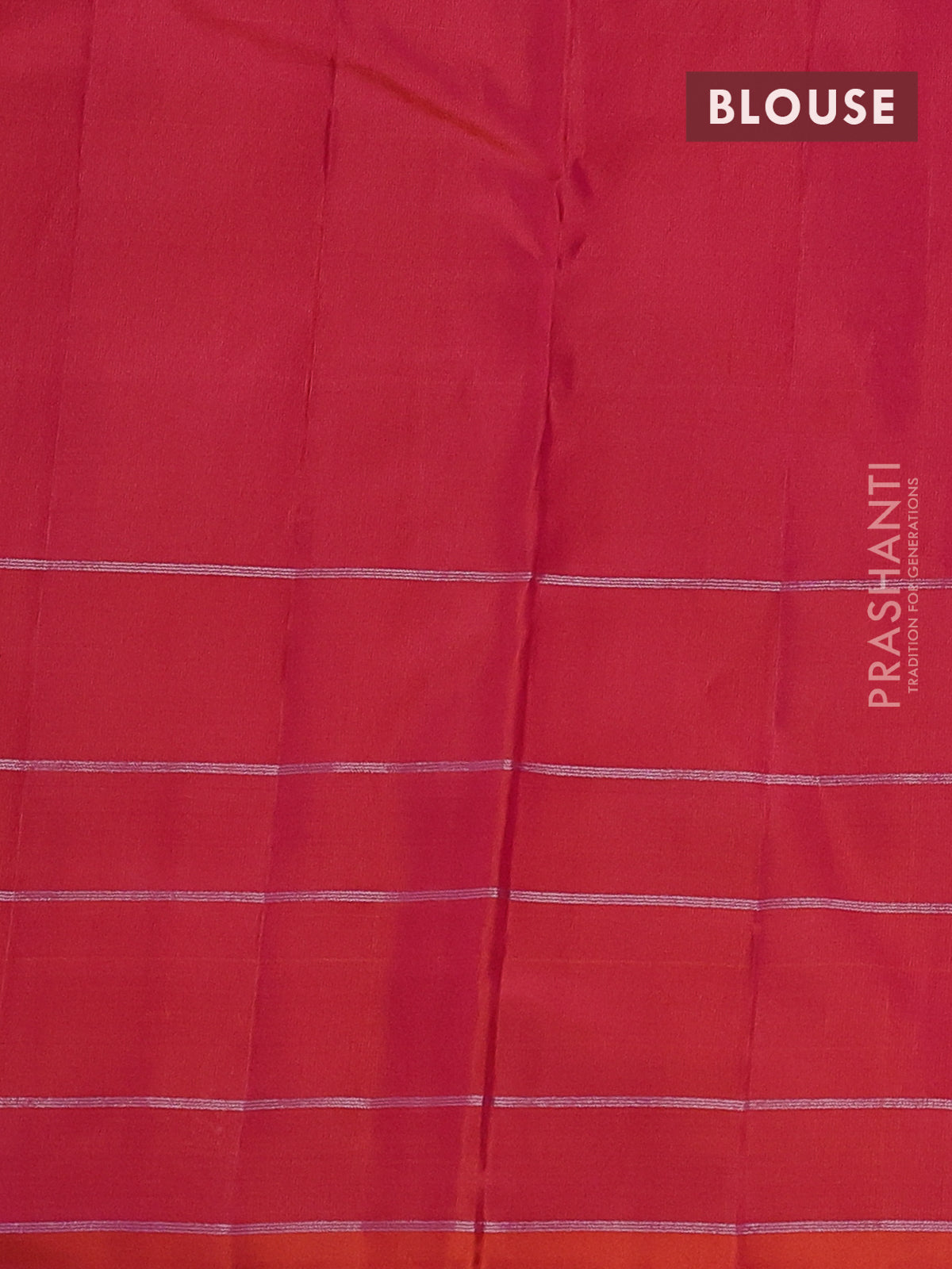 Pure soft silk saree dual shade of blue and dual shade of pinkish orange with allover silver zari weaves and zari woven butta border
