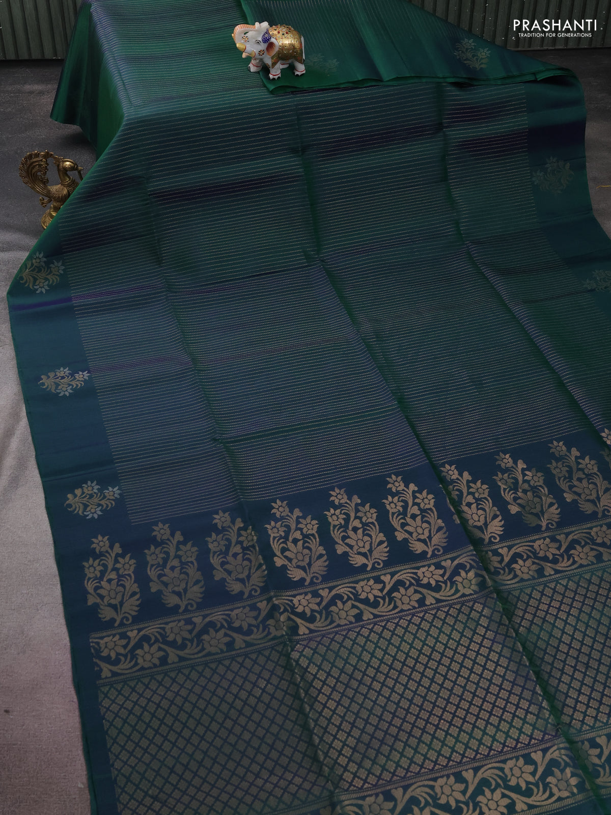 Pure soft silk saree dual shade of bluish green with allover zari weaves and zari woven floral butta border