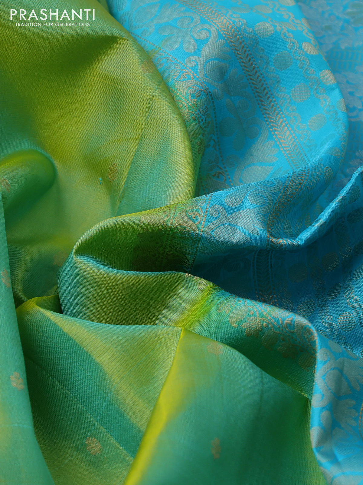 Pure soft silk saree dual shade of green and light blue with zari woven buttas and rettapet zari woven border
