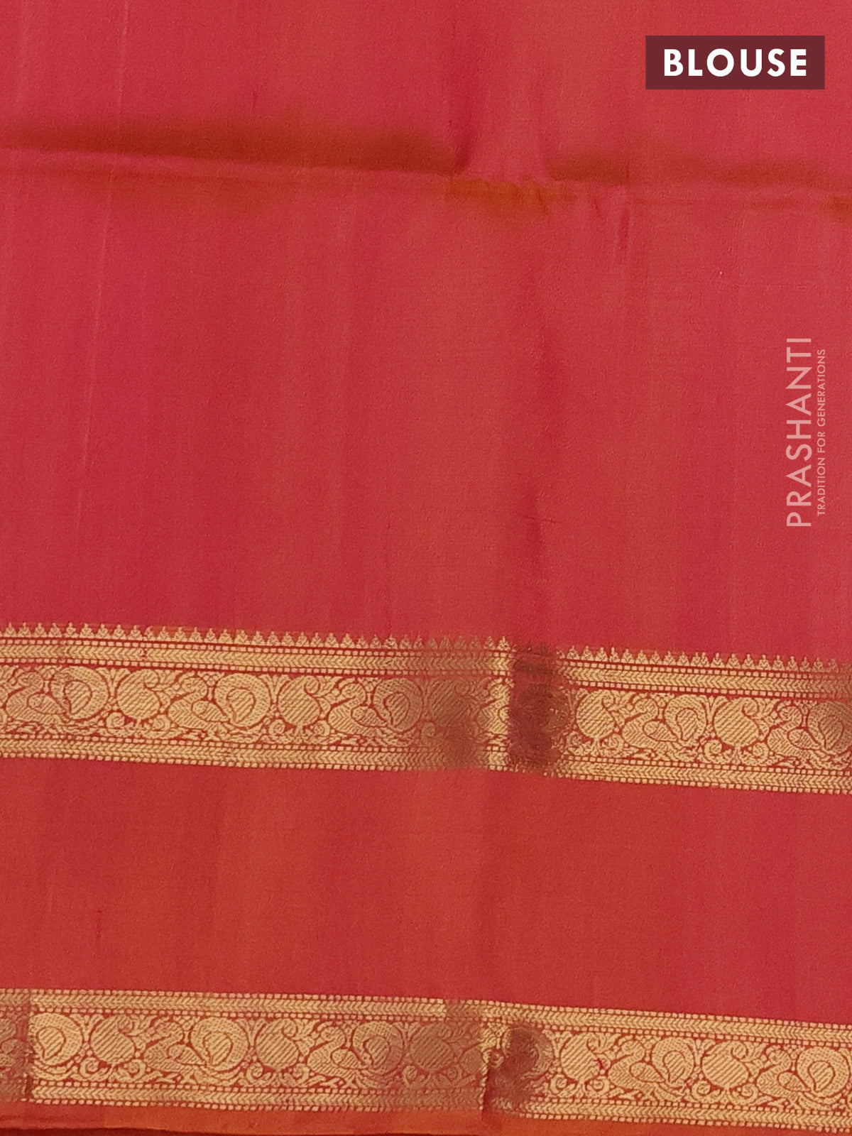 Pure soft silk saree dual shade of pinkish orange with zari woven buttas and rettapet zari woven border