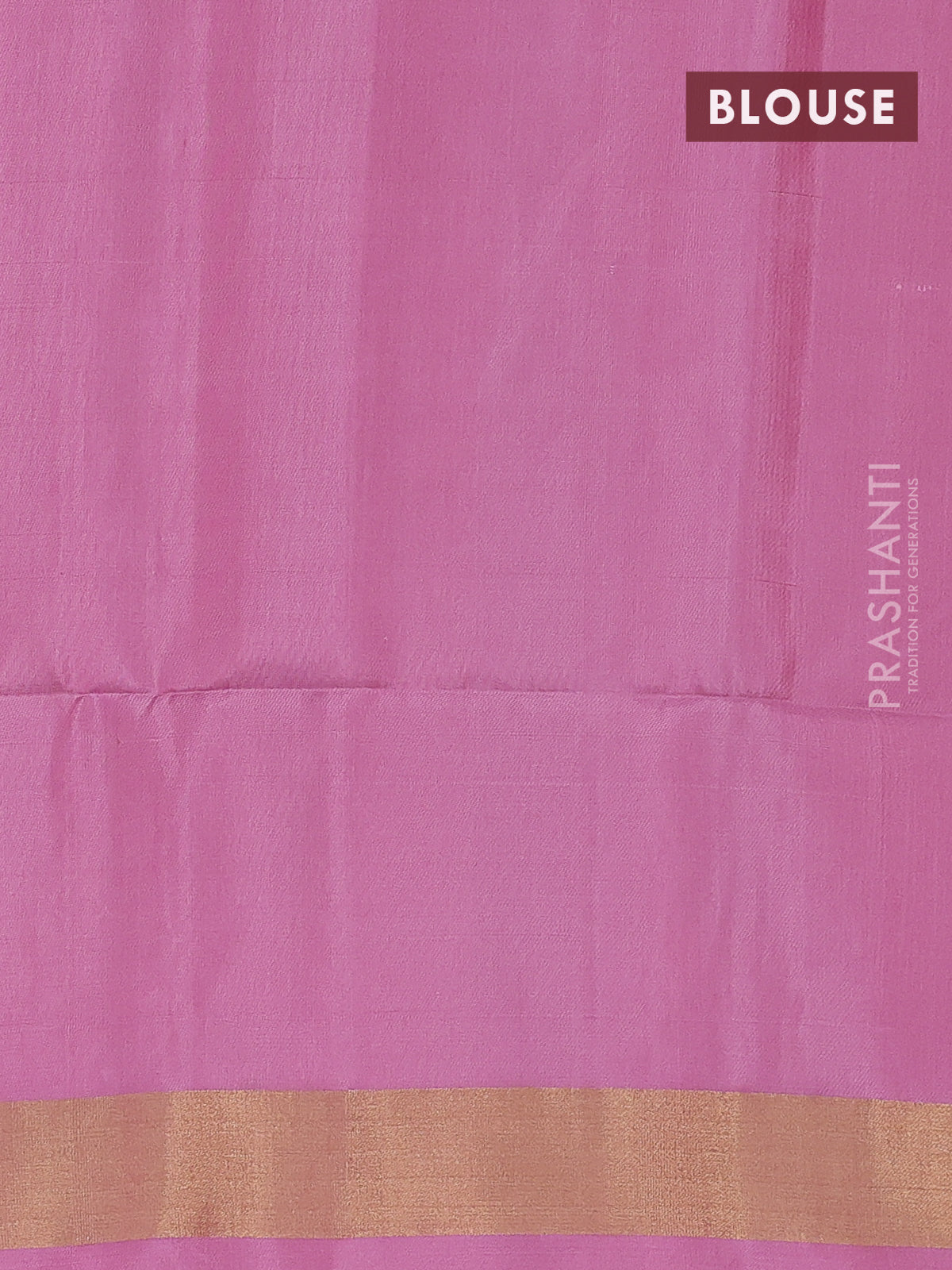 Pure soft silk saree dual shade of teal green and pastel pink with silver & gold zari woven buttas and rich zari woven border