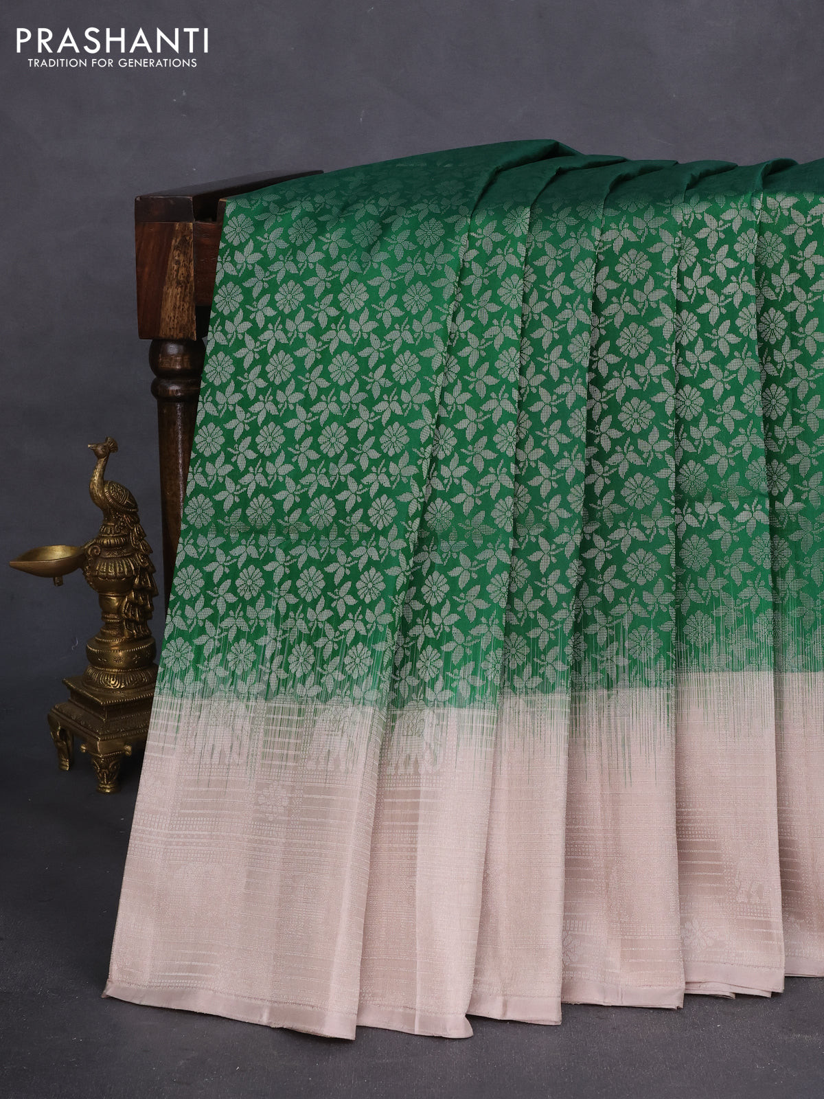 Pure soft silk saree green and pastel grey shade with allover silver zari brocade weaves and long silver zari woven border