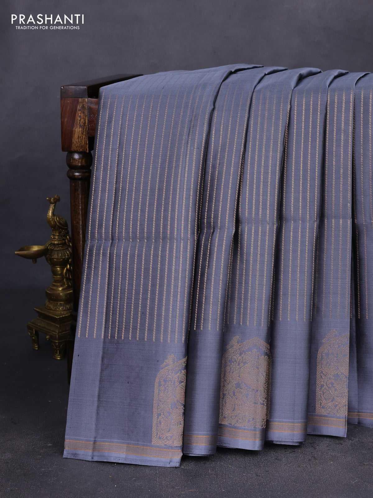 Pure soft silk saree grey with allover zari weaves and zari woven butta border