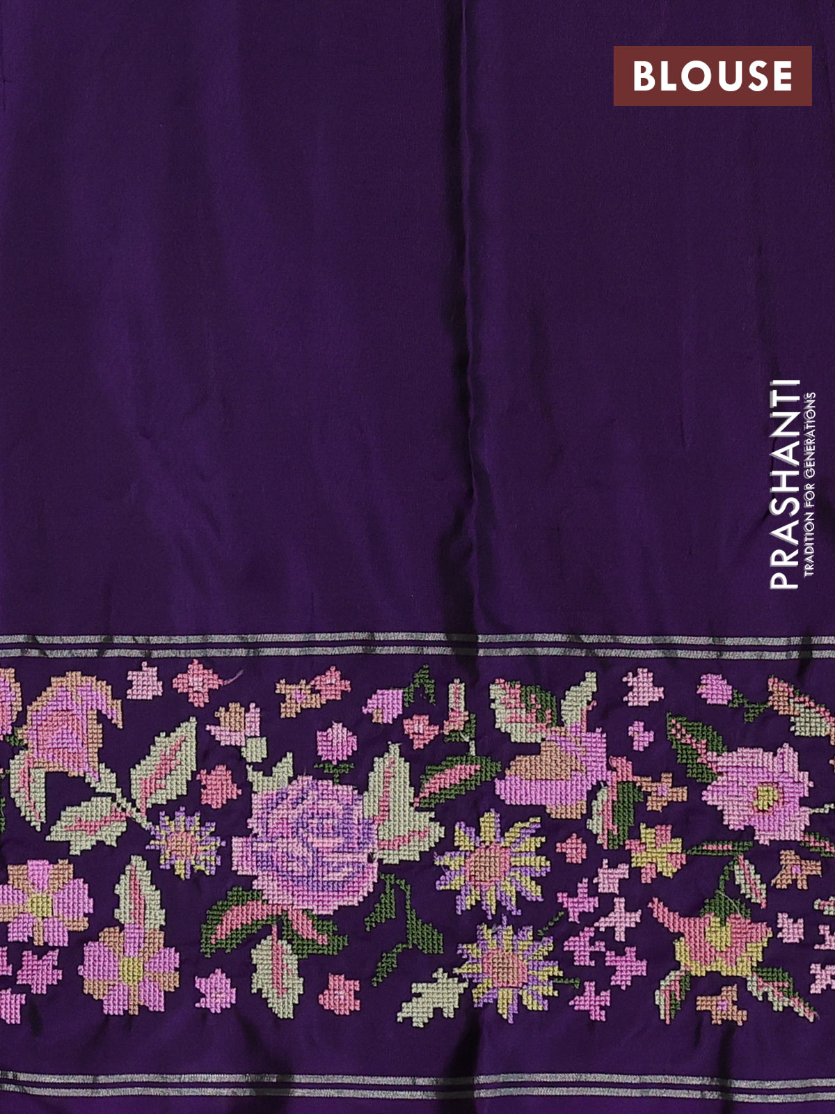 Pure soft silk saree lavender and violet with allover silver zari woven buttas and zari woven kutch embroidery