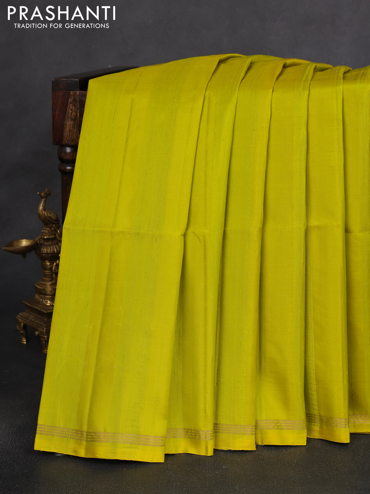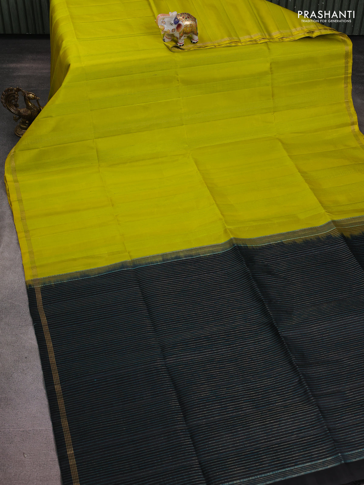 Pure soft silk saree lime green and black with allover jute finish and small zari woven border