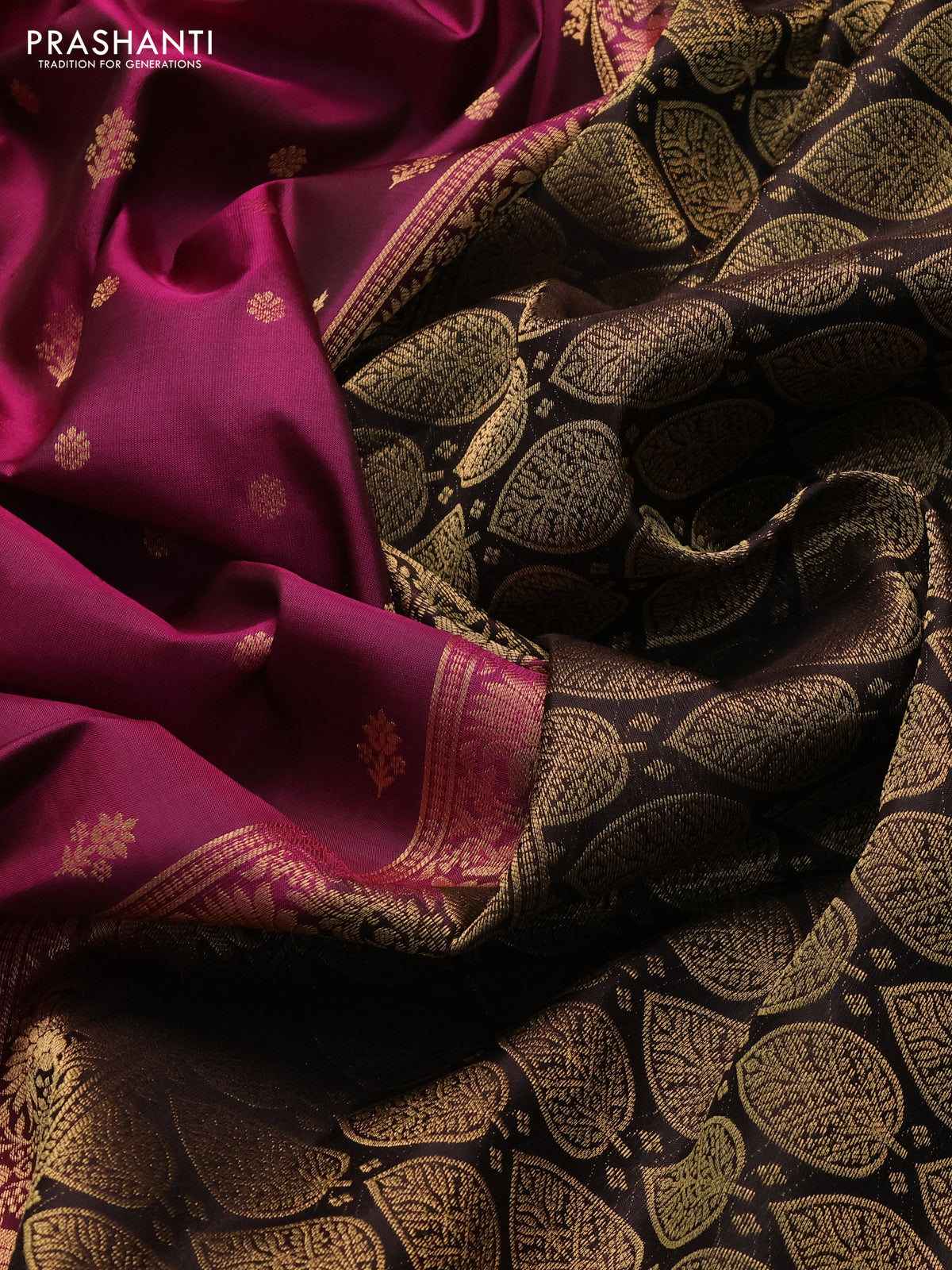 Pure soft silk saree magenta pink and deep coffee brown with zari woven buttas and zari woven border
